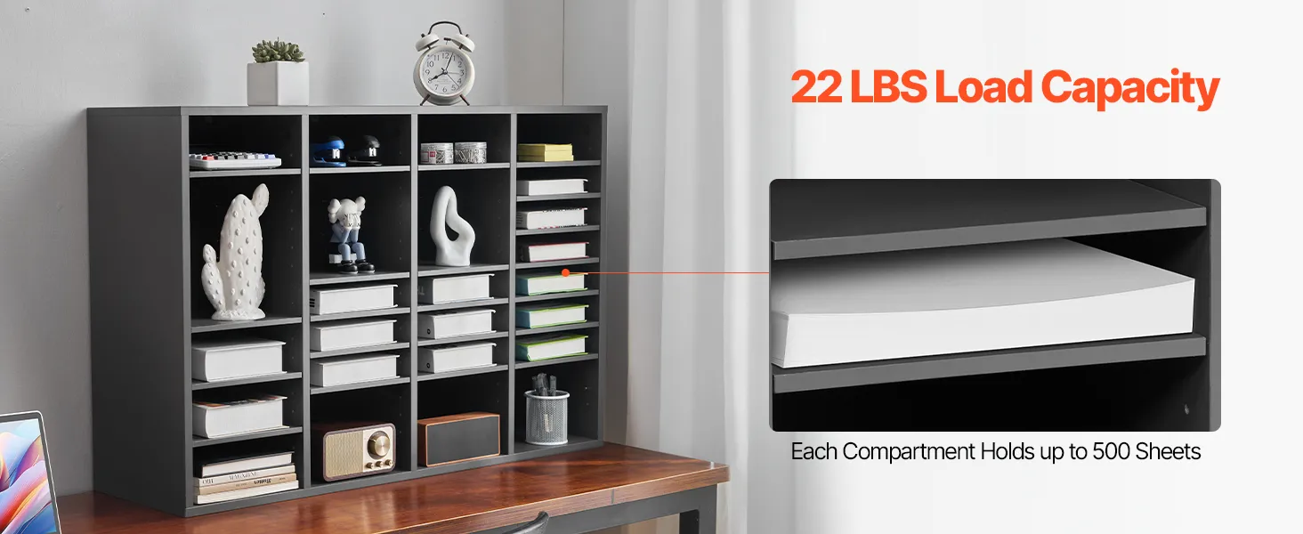 Každá polica kancelárskej schránky unesie až 22 libier / 10 kg a pojme až 500 listov papiera formátu A4. Či už ukladáte ťažké spisy alebo každodenné kancelárske potreby, tento organizér vám pomôže.