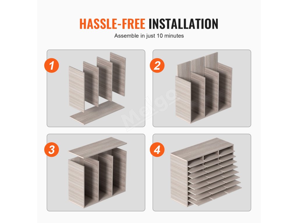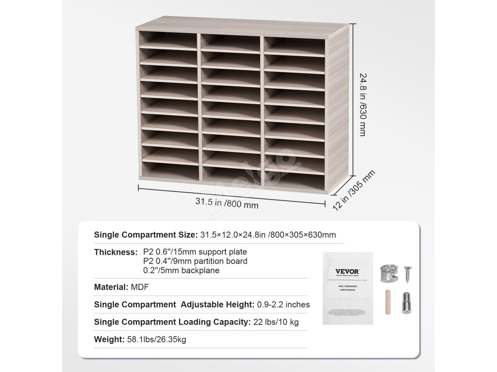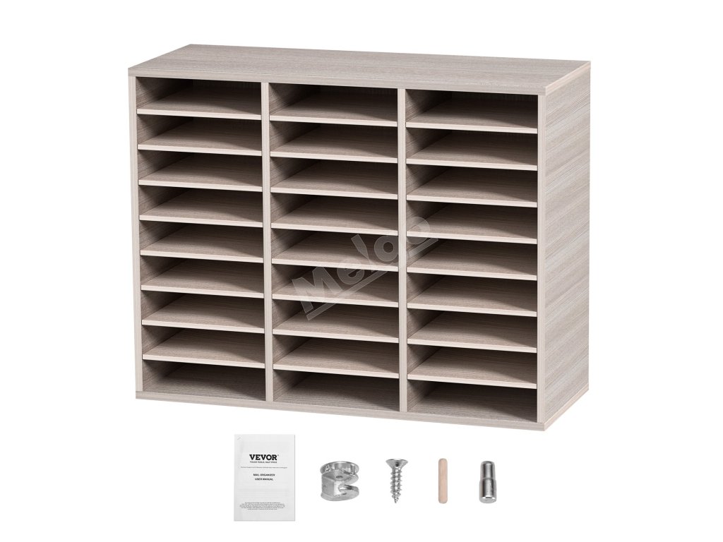 Organizér na dokumenty 27 priehradok, nastaviteľné police, mdf, sivý