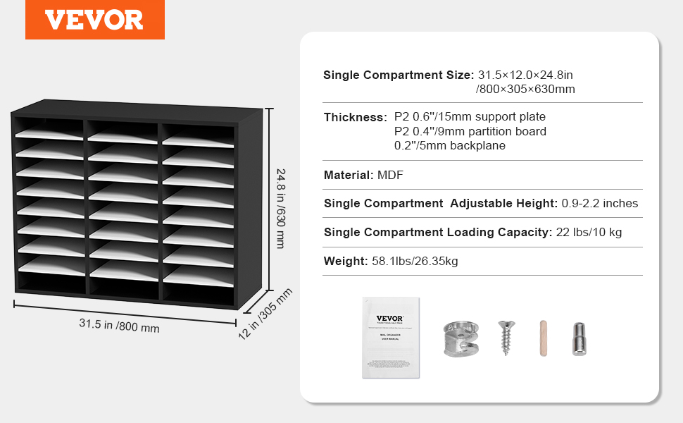 Organizér na dokumenty z mdf, 27 priehradok, nastaviteľné police