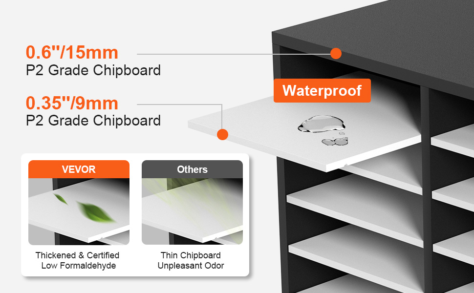 Organizér s držiakom na papier je vyrobený z MDF dosky, vďaka čomu je odolný proti opotrebovaniu, má silnú nosnosť, je vhodný na mnoho rokov a vydrží veľa používania.