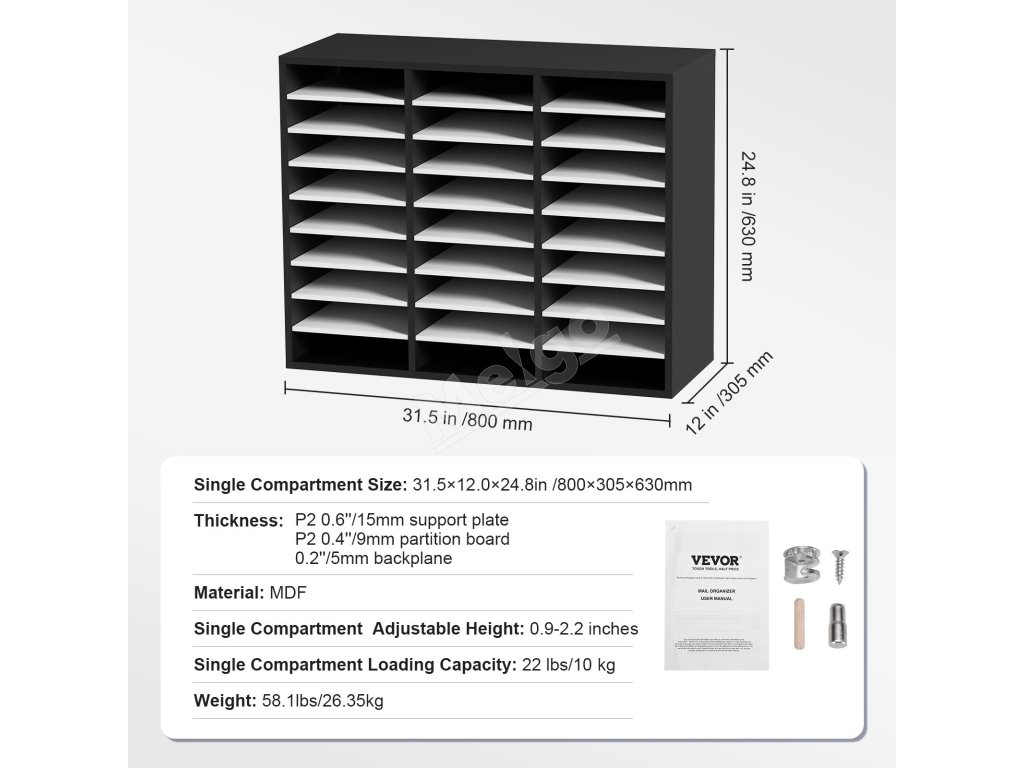 Organizér na dokumenty z mdf, 27 priehradok, nastaviteľné police