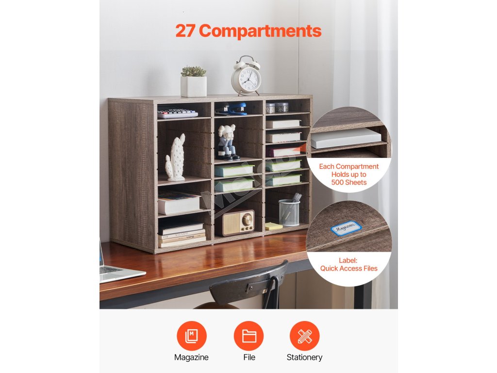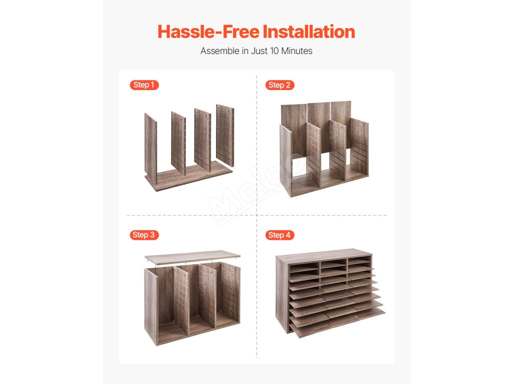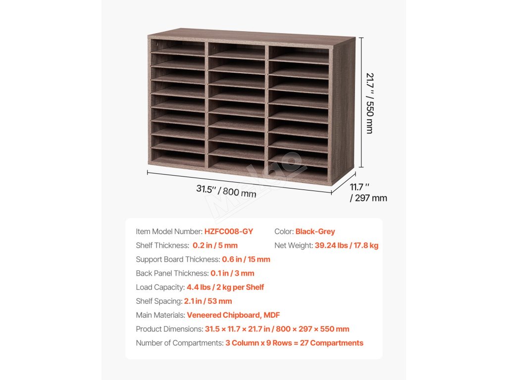 Každá priehradka kancelárskej schránky má rozmery 10,0 x 11,0 x 2,1 palca / 254 x 279 x 533 mm a pojme až 500 listov papiera formátu A4. Priložené štítky vám pomôžu rýchlo nájsť vaše súbory, čím ušetríte drahocenný čas.
