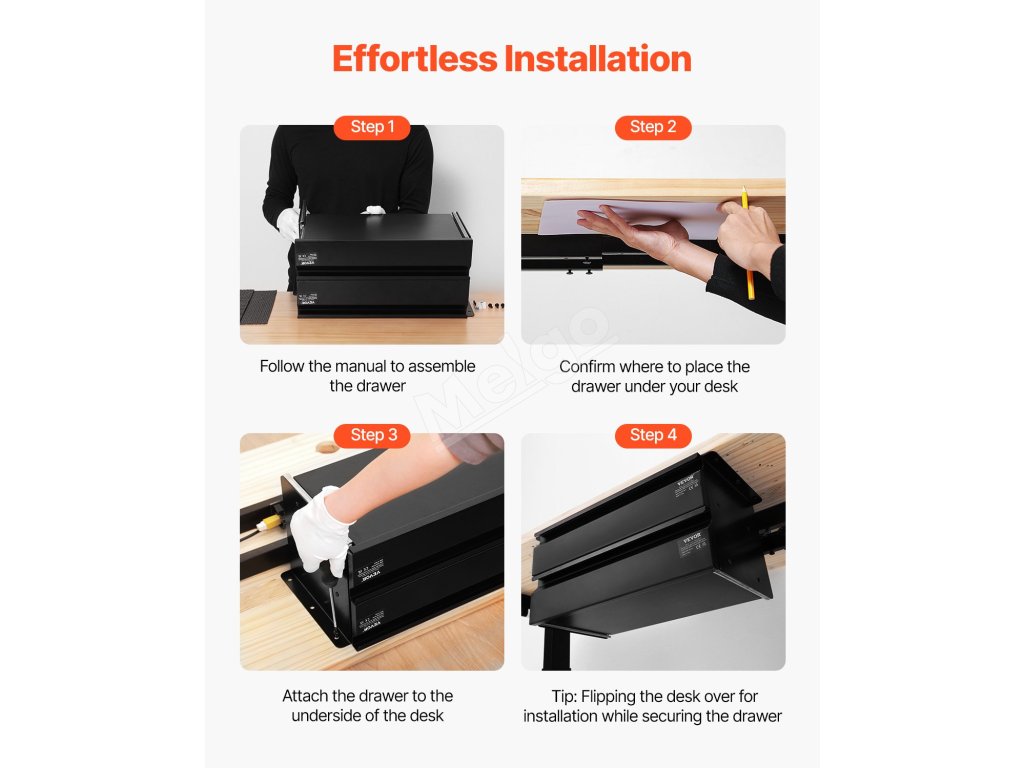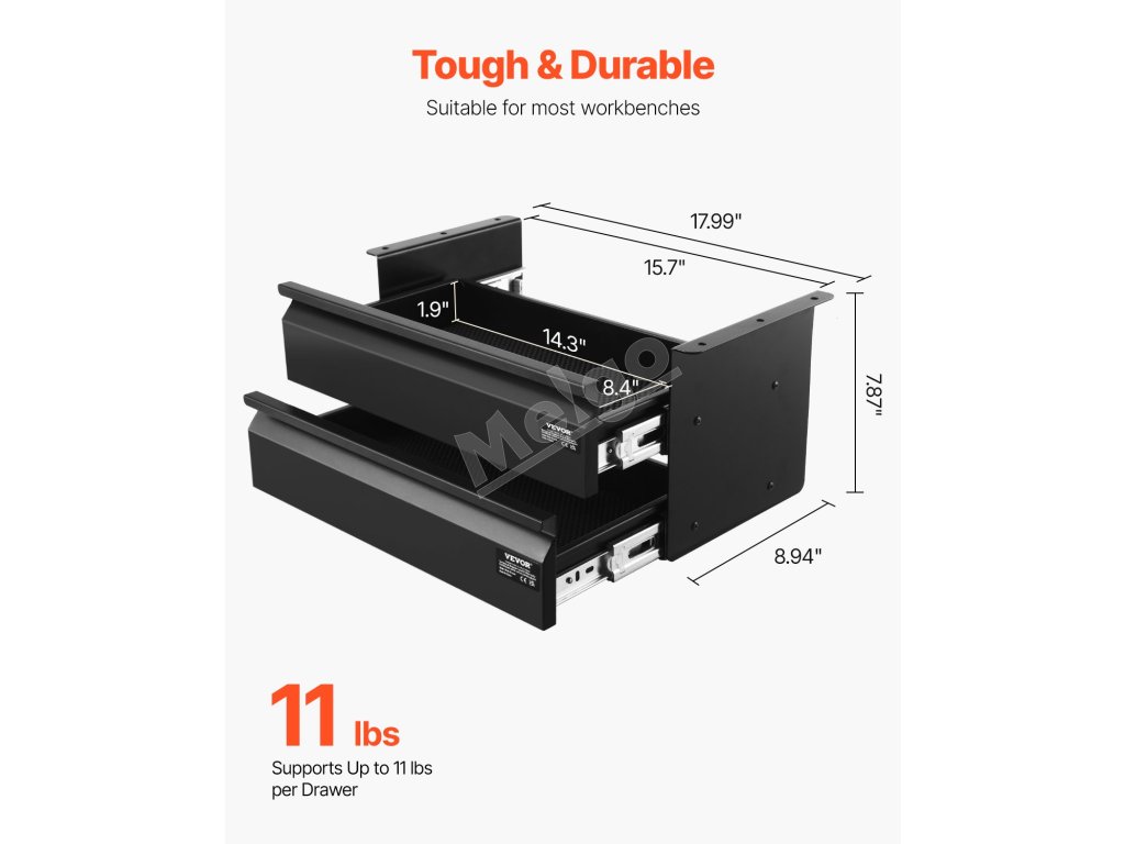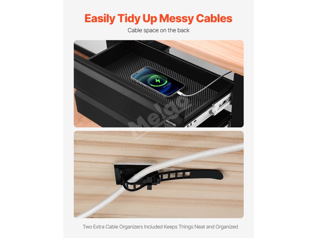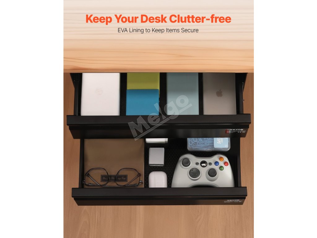 Táto zásuvka pod stolom má dve vrstvy, každá s nosnosťou 11 kg. Poskytuje skrytý úložný priestor na usporiadanie rôznych predmetov, čím vám pomôže zbaviť sa neporiadku na pracovnom stole a zachovať si produktívny pracovný priestor. Už žiadny neporiadok na povrchu - majte všetko potrebné na dosah.