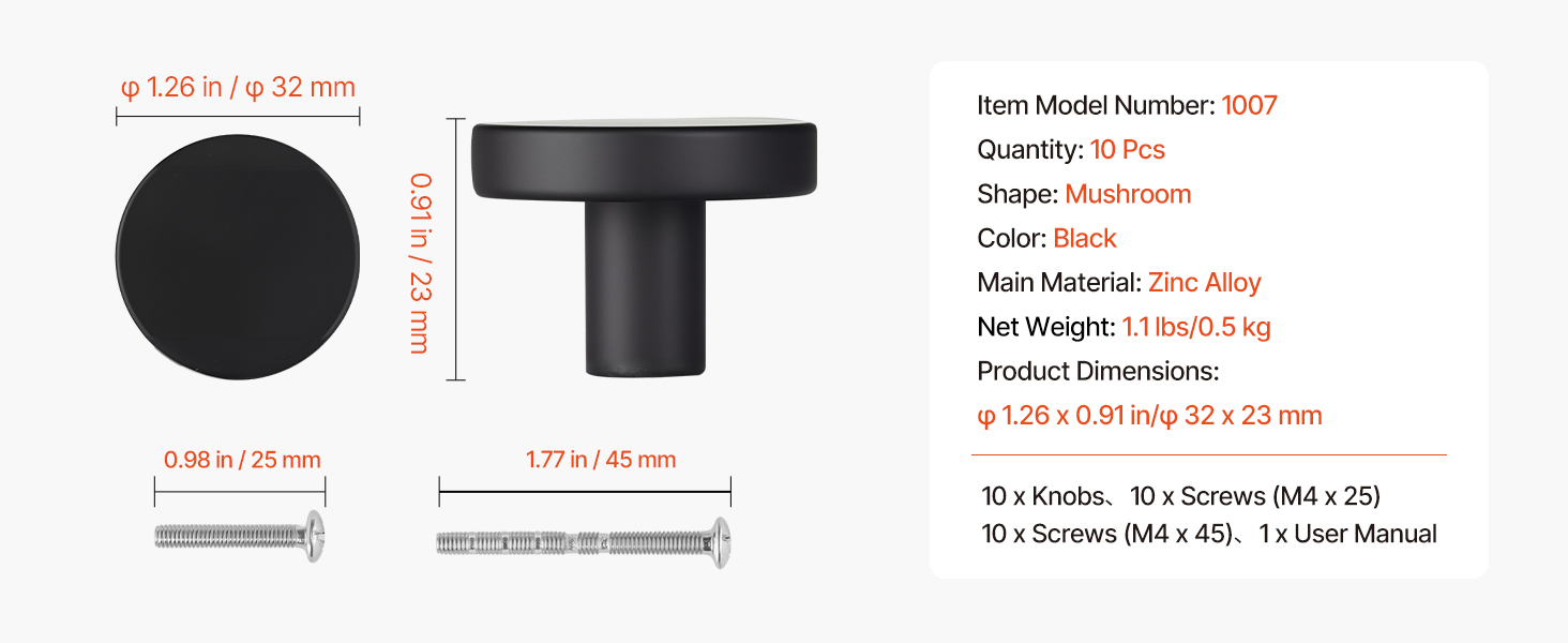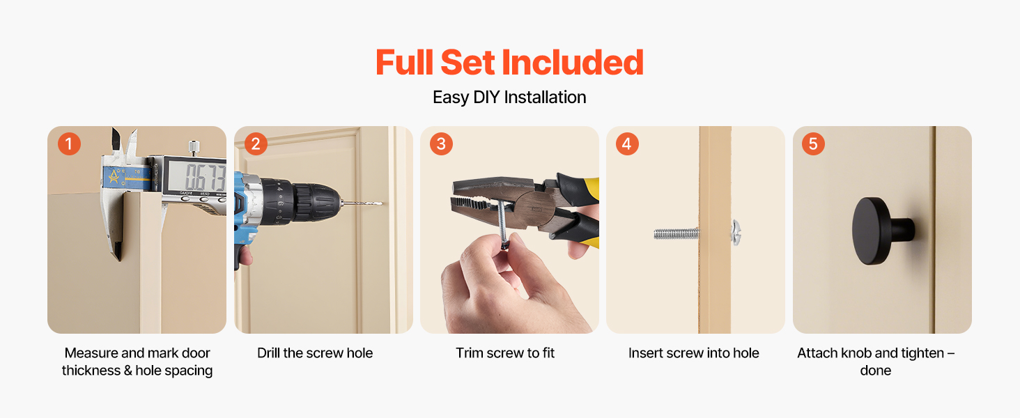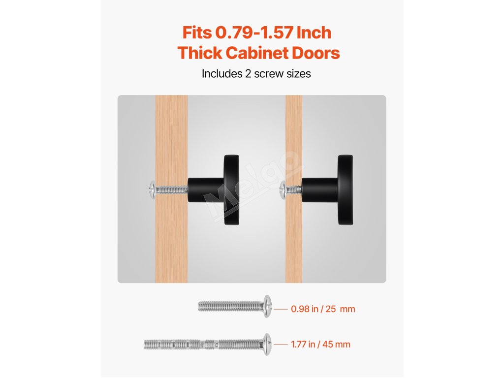 Naše gombíky na komody obsahujú dve veľkosti skrutiek, ktoré sa hodia k rôznym hrúbkam skriniek. Skrutky sa dajú podľa potreby upraviť a ich inštalácia trvá len niekoľko jednoduchých krokov bez potreby špeciálneho náradia.