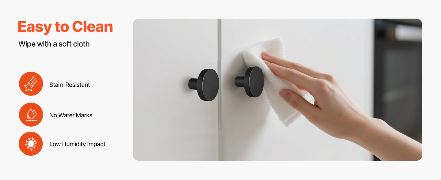 Kľučka zásuvky je odolná voči škvrnám, stopám po vode a nánosom vlhkosti. Na každodennú starostlivosť stačí jednoducho utrieť mäkkou handričkou. Údržba je rýchla a bezproblémová.