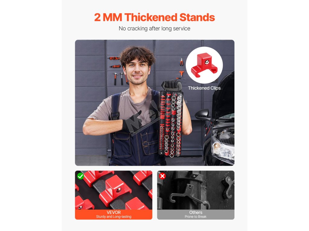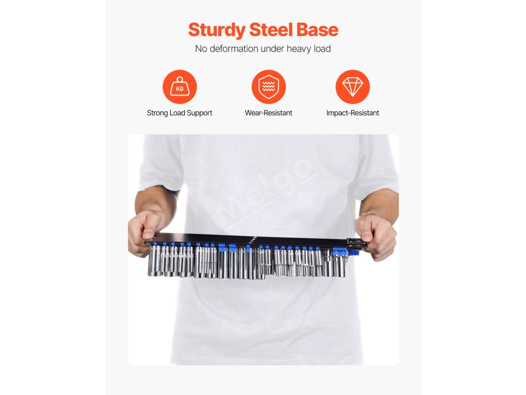 Náš prenosný zásobník na organizér zásuviek je kompatibilný s rôznymi značkami zásuviek a pojme až 160 zásuviek. Robustná oceľová základňa odoláva deformácii, zatiaľ čo zosilnené klipy zaisťujú trvanlivosť. Tento zásobník na zásuvky udržiava náradie usporiadané, vďaka čomu je držiak na zásuvky účinný pri každodennej práci v rôznych scenároch.