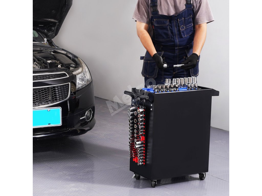 Tento prenosný zásobník na zásuvky do boxu na náradie pojme zásuvky rôznych veľkostí s nastaviteľnými rozstupmi, aby bolo náradie usporiadané a ľahko sa hľadalo.