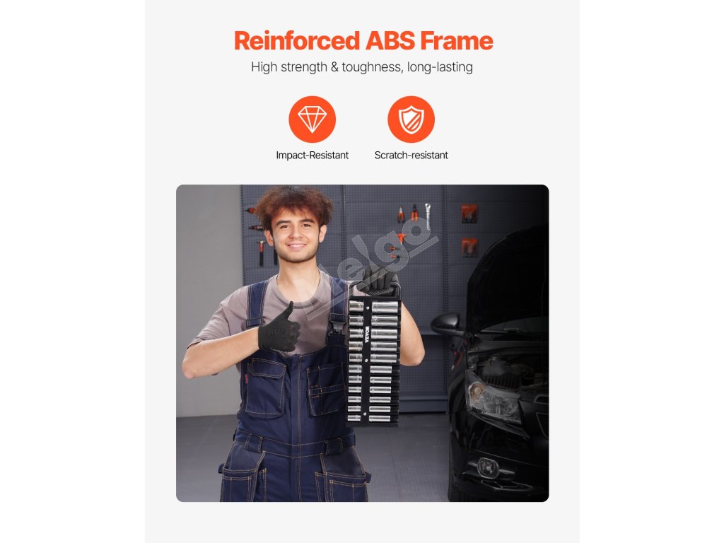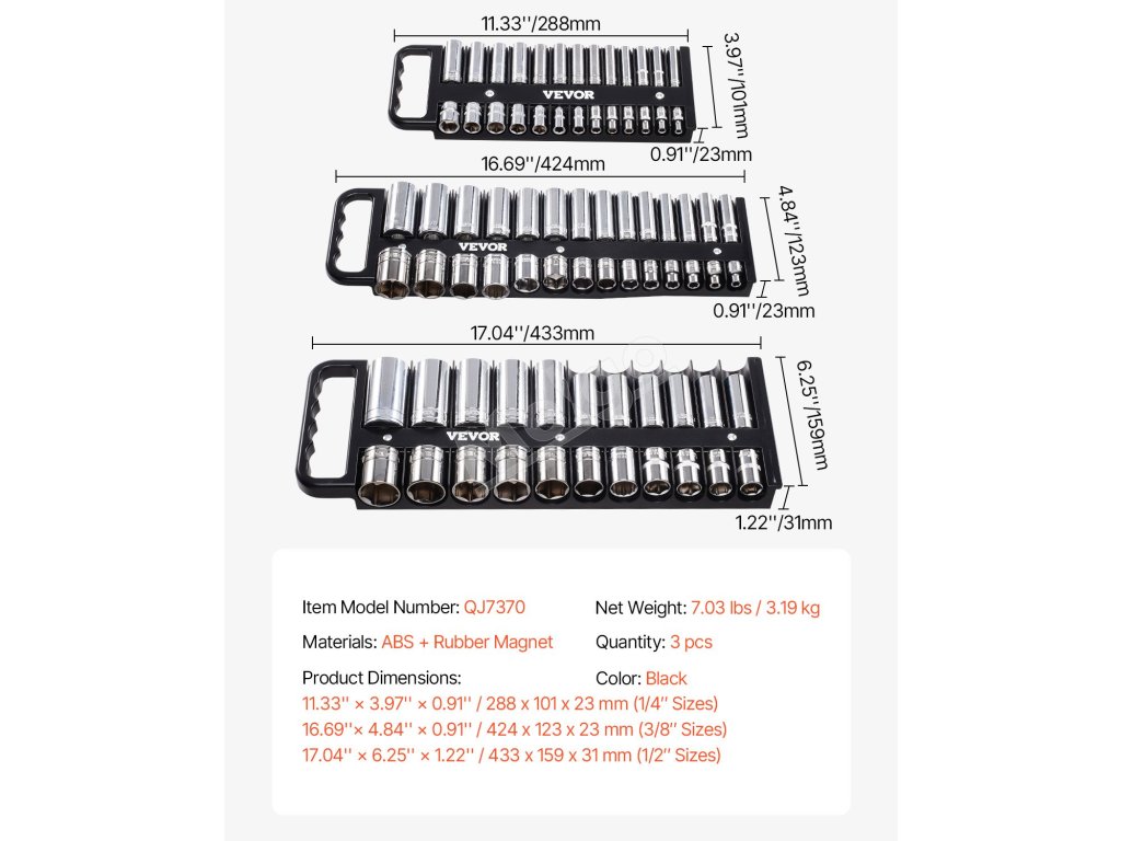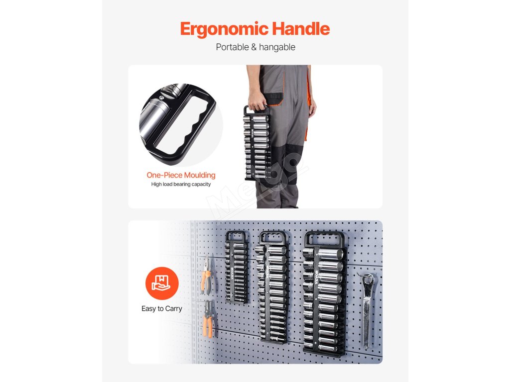 Prenosný organizér zásuviek VEVOR udržuje zásuvky v bezpečí vďaka magnetickej základni. Tento zásobník na zásuvky má ergonomickú rukoväť pre väčšie pohodlie a je kompatibilný s mnohými značkami zásuviek. Tento pevný držiak zásuviek vyrobený z robustného ABS zefektívňuje skladovanie a zvyšuje efektivitu v rôznych scenároch.