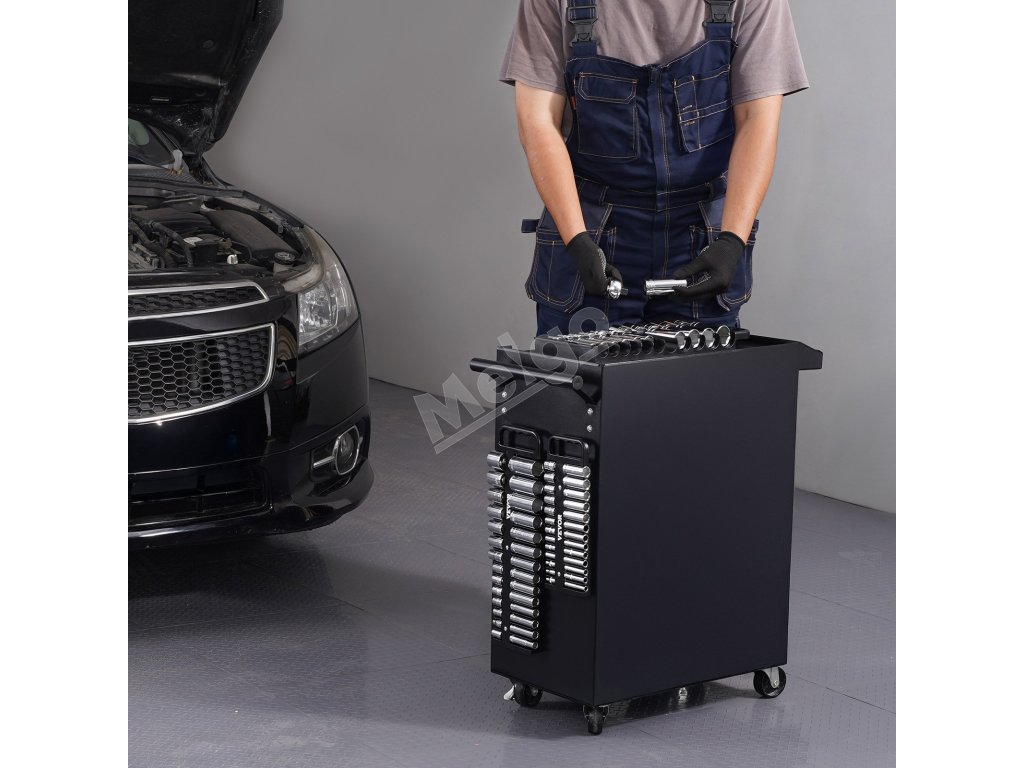 Táto prenosná súprava organizéra pojme 76 ks nástrčiek veľkosti 1/4'', 3/8'' a 1/2'' pre metrické a SAE s nastaviteľnými rozstupmi, aby bolo všetko prehľadne usporiadané a ľahko sa s nimi manipulovalo.