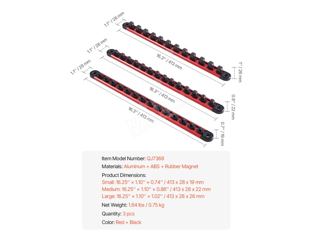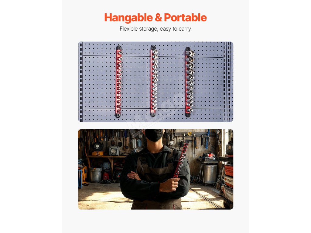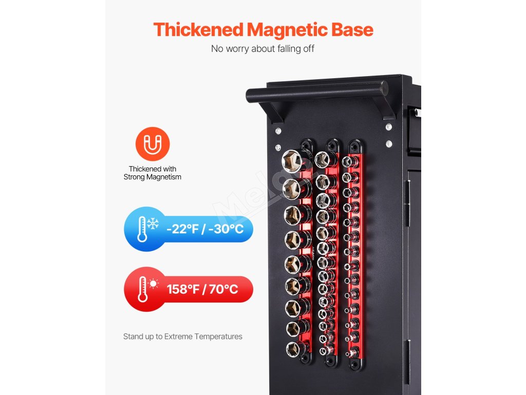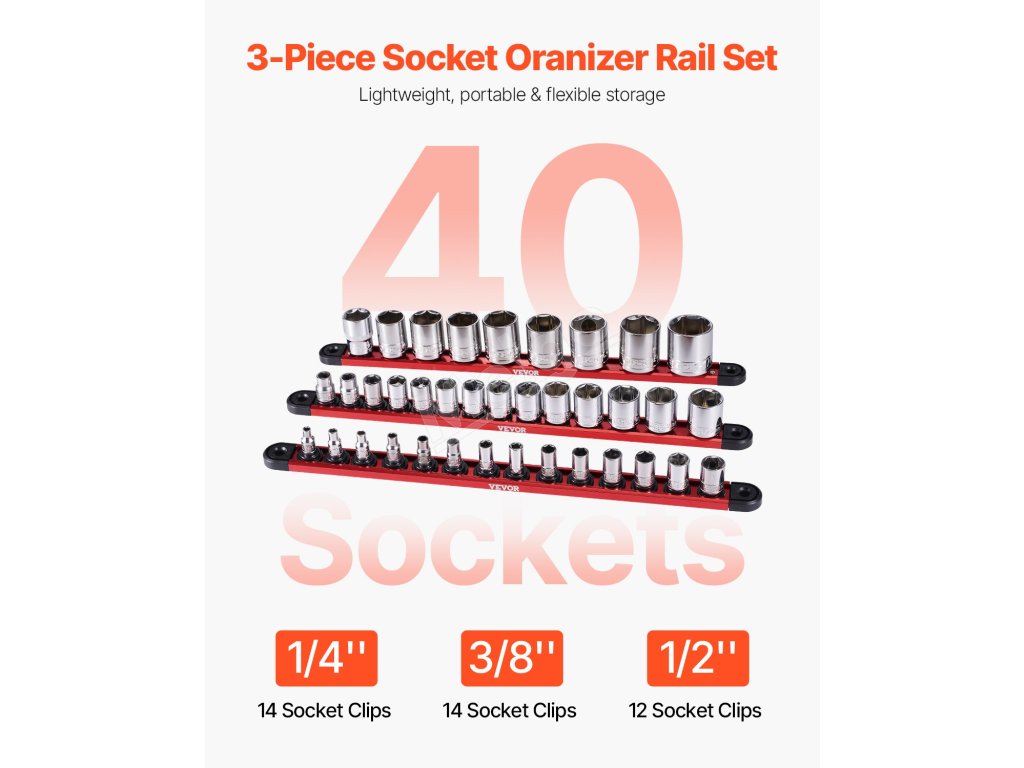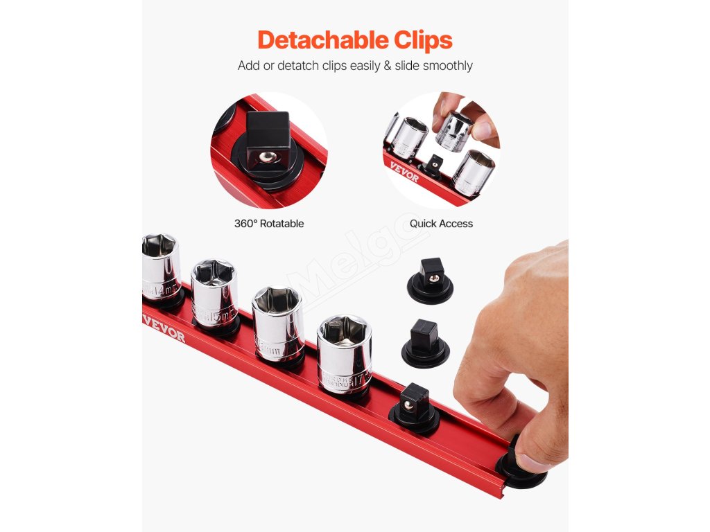 Súprava organizérov zásuviek VEVOR je vybavená 360° otočnými klipmi pre ľahký prístup k náradiu a je kompatibilná s viacerými značkami zásuviek, aby bol váš pracovný priestor prehľadný a čistý. Jej silná magnetická základňa môže priľnúť k mnohým kovovým povrchom, čím poskytuje rýchle a prenosné nastavenie na efektívnejšie úlohy.