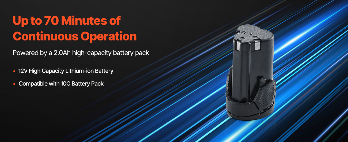 Naše akumulátorové oscilačné náradie sa dodáva s lítiovou batériou 12V 2,0 Ah a nabíjačkou s prúdom 2A, ktorá poskytuje dlhší čas prevádzky na plné nabitie. (pri nabíjaní sa uistite, že je akumulátor správne vložený do základne nabíjačky)