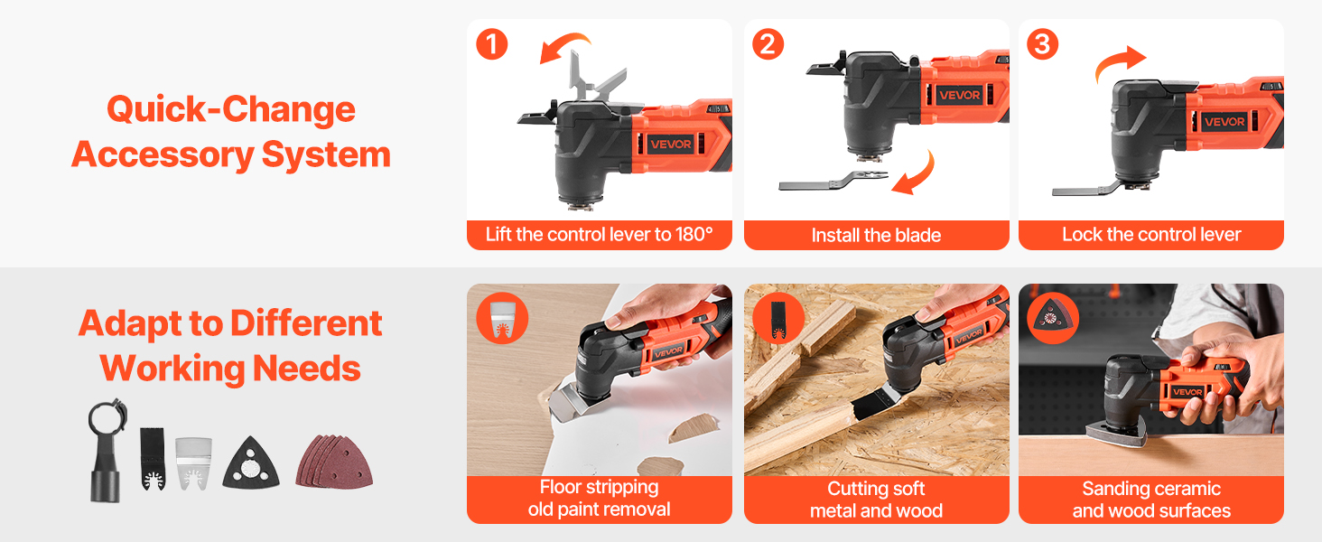 Urobte viac práce s 20V akumulátorovým oscilačným náradím VEVOR