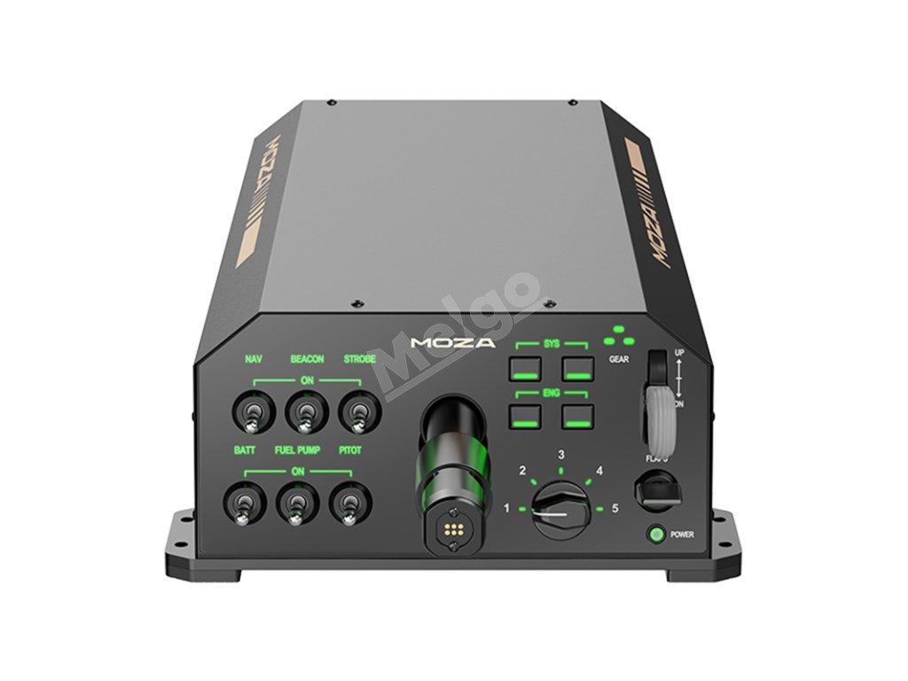 Na prednom paneli nájdete 13 programovateľných prepínačov, ktoré sú plne prispôsobiteľné pomocou softvéru MOZA Cockpit. Môžete ich nakonfigurovať tak, aby ovládaliokrem iného. osvetlenie, telemetriu alebo funkcie dlhého stlačenia, okrem iného. Softvér MOZA Cockpit zasa ponúka širokú škálu nastavení - od úpravy jasu a správania sa podsvietenia až po pripravené predvoľby silovej spätnej väzby. Všetko preto, aby ste si mohli zariadenie dokonale prispôsobiť vlastnému štýlu lietania a očakávaniam.