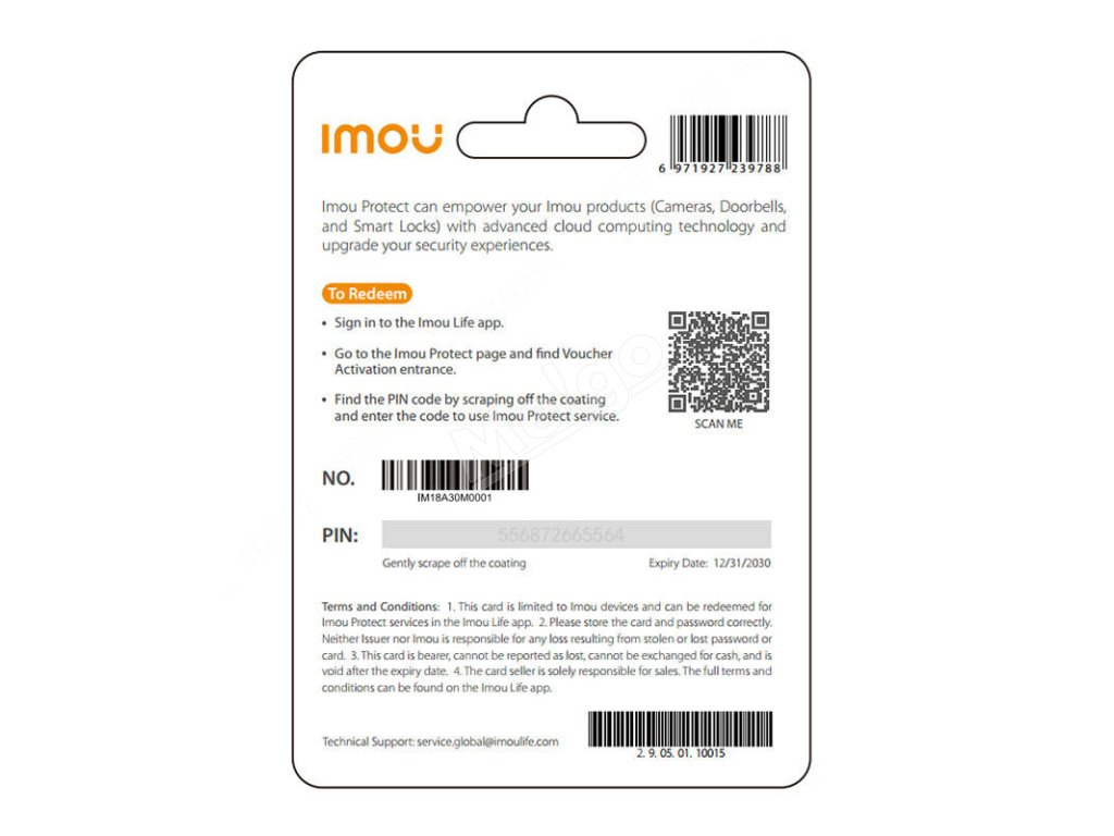S touto kartou získate ročné predplatné podpory pre vaše produkty IMOU. Vďaka nej získate pokročilú technológiu cloud computingu, ako aj zvýšenú bezpečnosť. Vyberte si IMOU Protect a užite si ešte viac pohodlia. Poznámka: Predplatné sa vzťahuje len na jednu kameru, neplatí pre DVOJKAMERY.