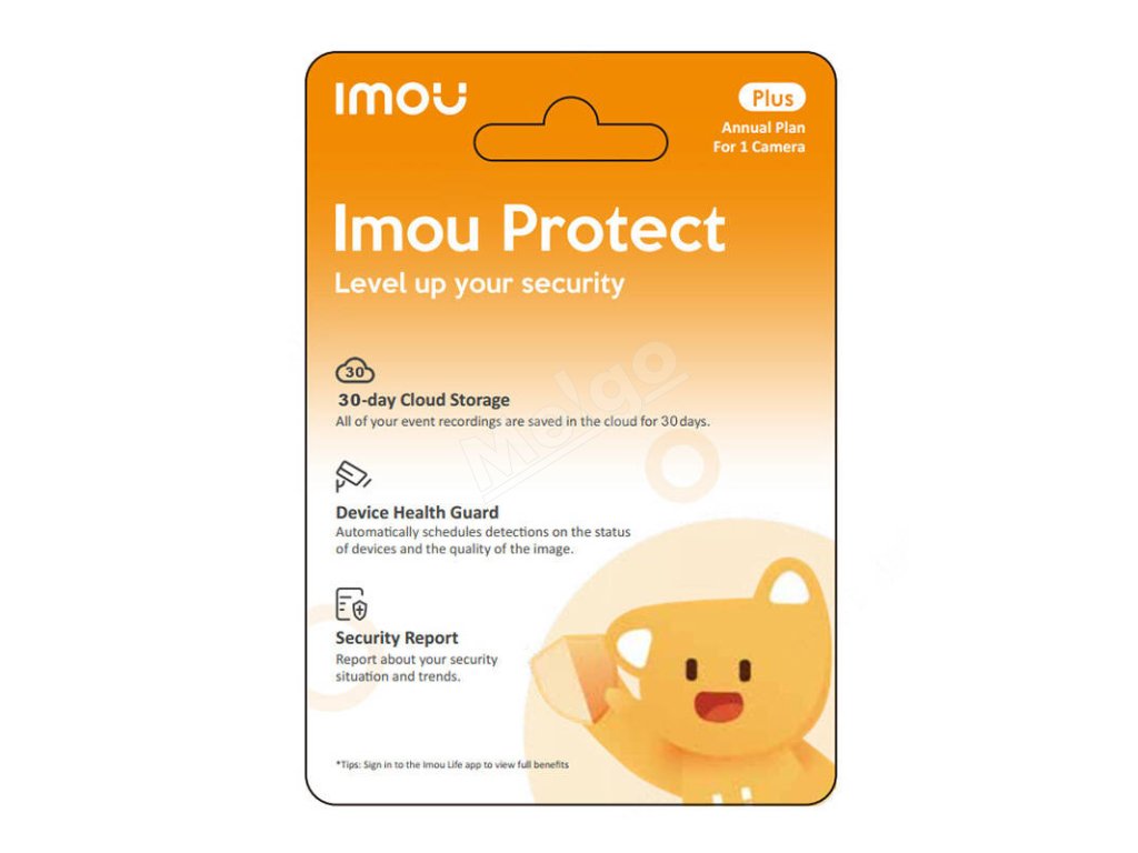 S kartou získate ročné predplatné podpory pre vaše produkty IMOU. V rámci neho získate pokročilú technológiu cloud computingu, ako aj zvýšenú bezpečnosť. Vyberte si kartu IMOU Protect a užite si ešte viac pohodlia. Poznámka: Predplatné sa vzťahuje len na jednu kameru, neplatí pre DVOJITÉ kamery.