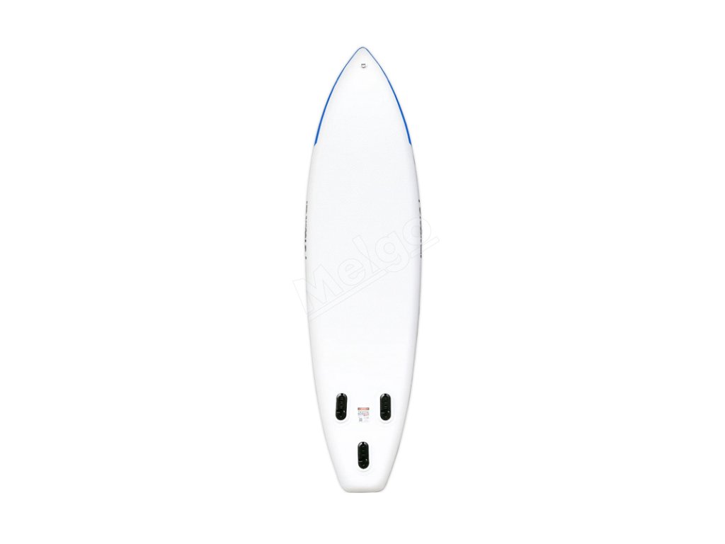 Ergonomická rukoväť uľahčuje prenášanie dosky a vyťahovanie z vody. Vstavaný tlakomer umožňuje priebežne sledovať úroveň nahustenia – odporúčaný tlak je medzi 12 a 15 PSI, čo pomáha udržiavať optimálnu tuhosť a výkon na vode. Flexibilné šnúry umožňujú bezpečne pripevniť batoh alebo iné príslušenstvo a dodatočný D-krúžok umožňuje namontovať sedadlo na kajak.