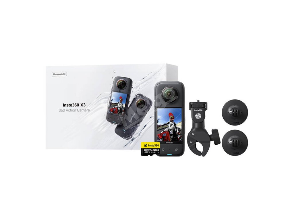 The Insta360 X3 offers high-quality 360-degree video recording. It's a perfect choice for enthusiasts of dynamic activities, providing excellent image stabilization, multiple practical modes, and quick editing options. In the package, you'll also find mounts for motorcycle handlebars, helmet mounting, and a 128GB memory card. It's a fantastic option for motorcycle riders who want to record their journeys!