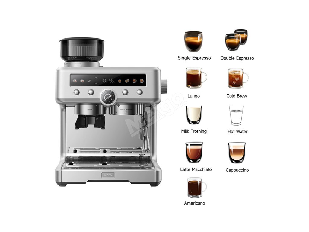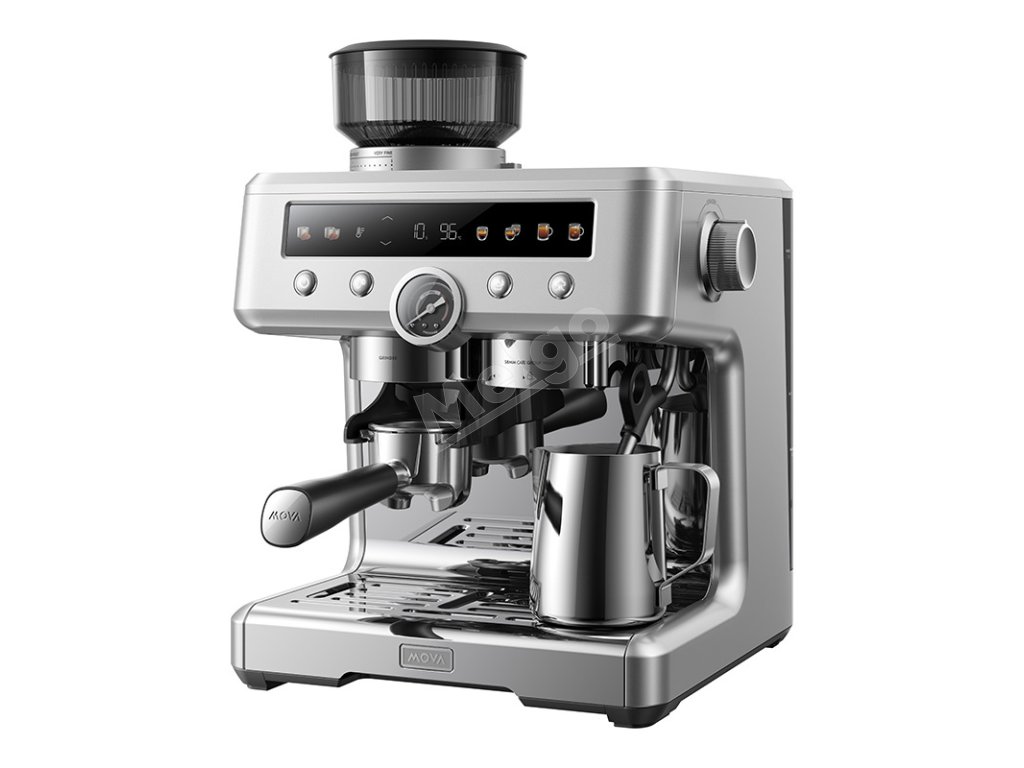 MOVA S20 Pro je espresso kávovar vytvorený pre tých, ktorí si chcú vychutnať skvelú chuť kávy bez toho, aby museli opustiť domov. Prístroj kombinuje kónický mlynček s 34-stupňovým nastavením, dvojitý bojler a systém čerpadla, ako aj trojitý systém napeňovania mlieka. Vďaka tomu si môžete pripraviť klasické espresso aj krémové cappuccino s dokonalou penou. Nádoba na kávové zrná s objemom 250 g a silikónovým tesnením odolným proti úniku chráni čerstvosť a arómu kávy, zatiaľ čo funkcia Anti-Static Grinding zabraňuje prilepeniu a rozsypaniu namletých zŕn. Stabilná teplota varenia, tlak 20 barov a plne prispôsobiteľné parametre vám umožnia získať kávu presne takú, akú máte radi - aromatickú, intenzívnu a plnú chuti.