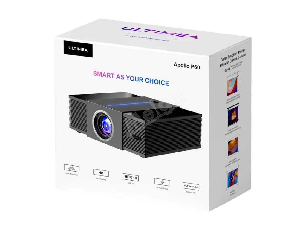 Ultimea Apollo P60 je vybavený pokročilými automatickými algoritmami, ktoré zabezpečujú dokonalé nastavenie obrazu. Inteligentné vyhýbanie sa prekážkam, automatické nastavenie obrazovky, 3-sekundové automatické zaostrenie a automatická 6D korekcia lichobežníka umožňujú projektoru prispôsobiť sa podmienkam v miestnosti, čím vám šetria čas a zabezpečujú dokonalé výsledky bez manuálnej konfigurácie.