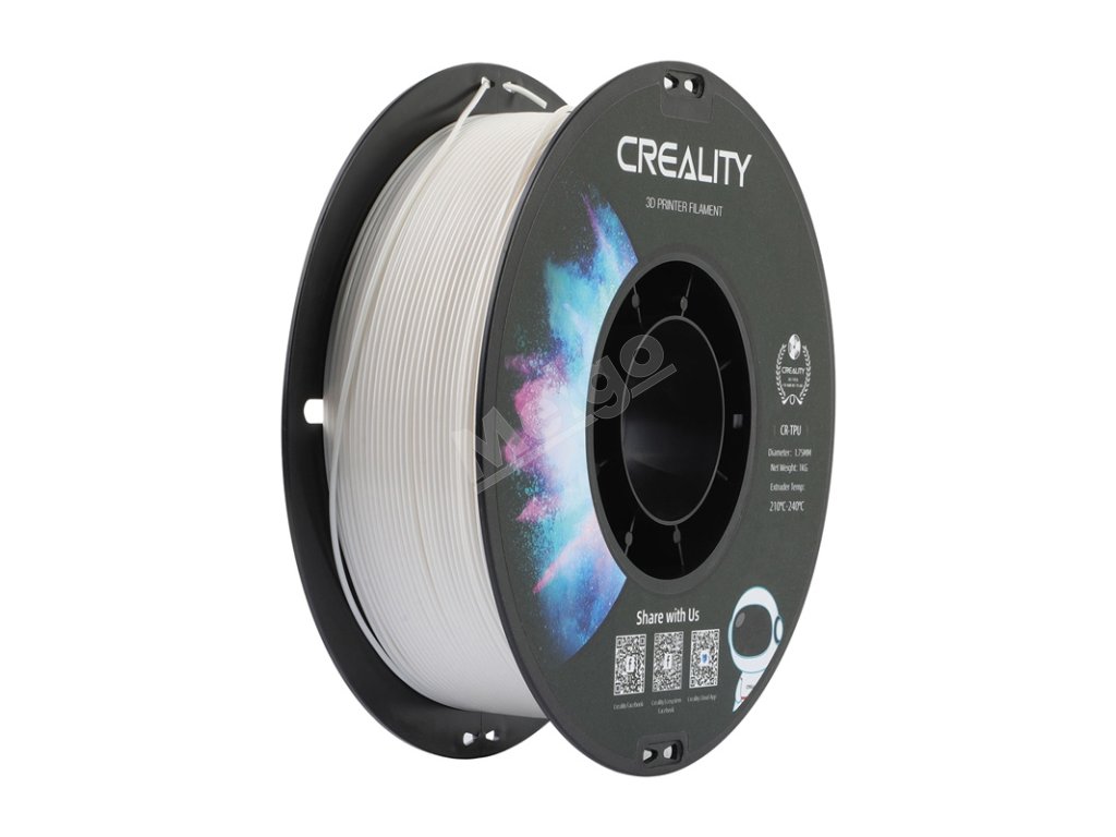 Vlákno Creality CR-TPU je vysokokvalitný, vysoko flexibilný plast, ktorý kombinuje výnimočnú pružnosť s trvanlivosťou. Vďaka svojej mäkkej štruktúre a vysokej priľnavosti je ideálny na tlač dielov, ktoré si vyžadujú pružnosť a odolnosť voči deformácii - napríklad puzdier, tesnení, držadiel alebo podrážok. Materiál je kompatibilný s väčšinou tlačiarní FDM vrátane všetkých modelov Creality.
