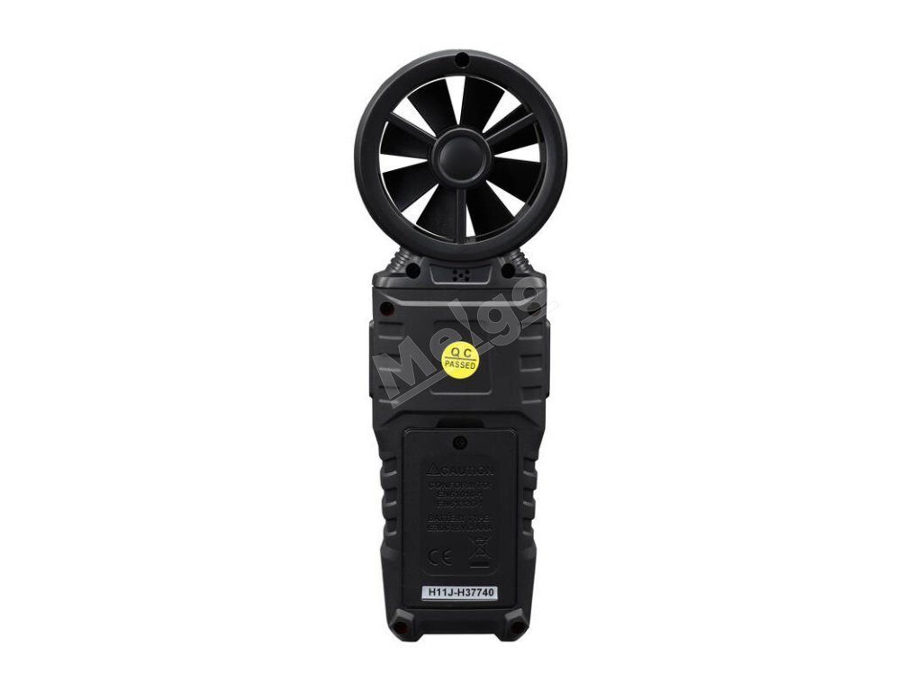 Tento multifunkčný anemometer presne meria rýchlosť a objem prúdenia vzduchu, ako aj plochu vzduchového kanála. Vyznačuje sa vysokou citlivosťou. Umožňuje tiež vykonávať priemerné merania. K rôznym funkciám a nastaveniam sa dostanete stlačením určitých tlačidiel.