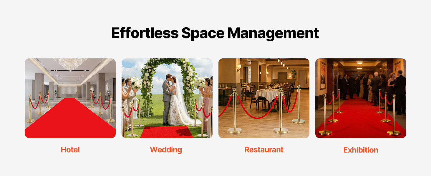 Ideálne pre podujatia s červeným kobercom, hotelové haly, výstavy, divadlá a čakacie rady – dodávajú poriadok a eleganciu akémukoľvek priestoru.