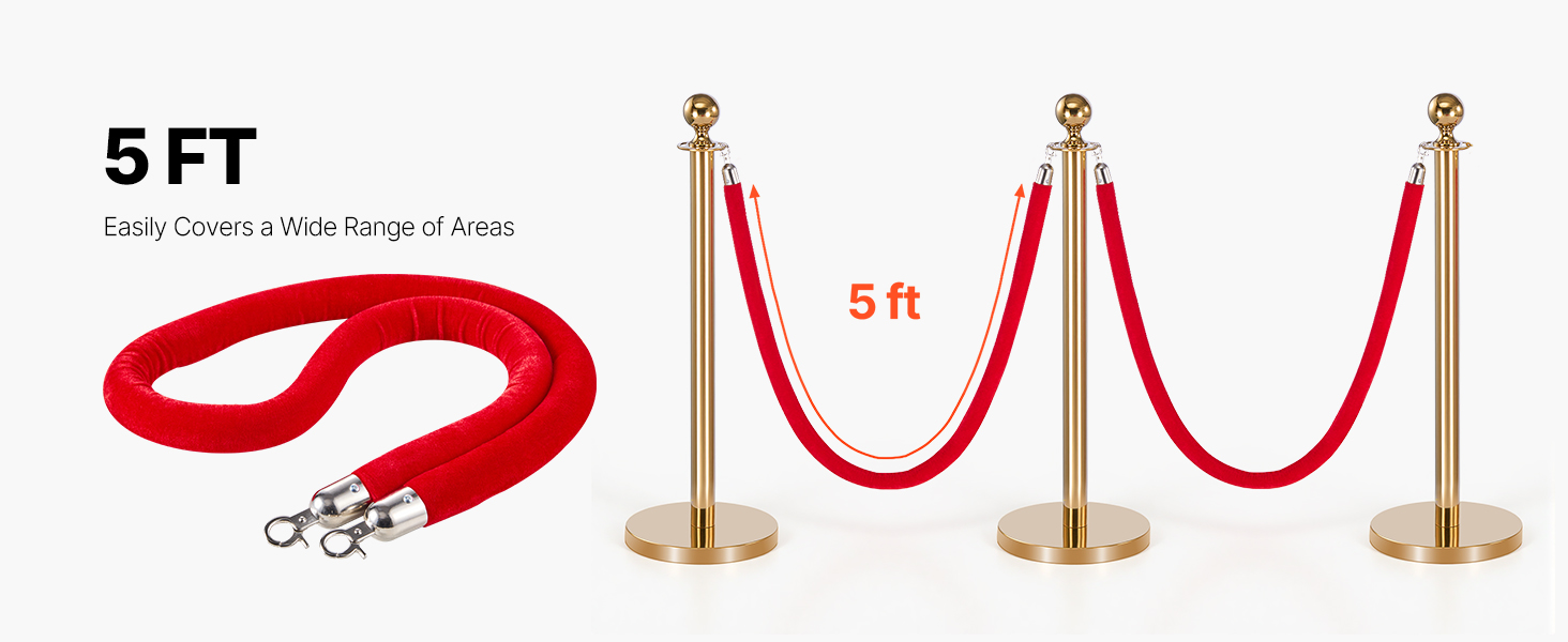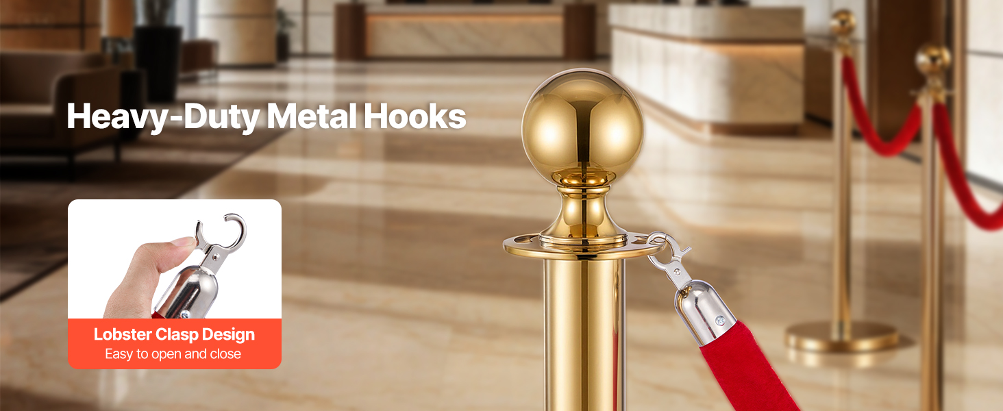 Háčiky zamatových lanových zábran sú navrhnuté pre rýchle pripnutie a hodia sa na väčšinu štandardných stĺpikov – sú ideálne ako náhradné alebo predlžovacie laná.