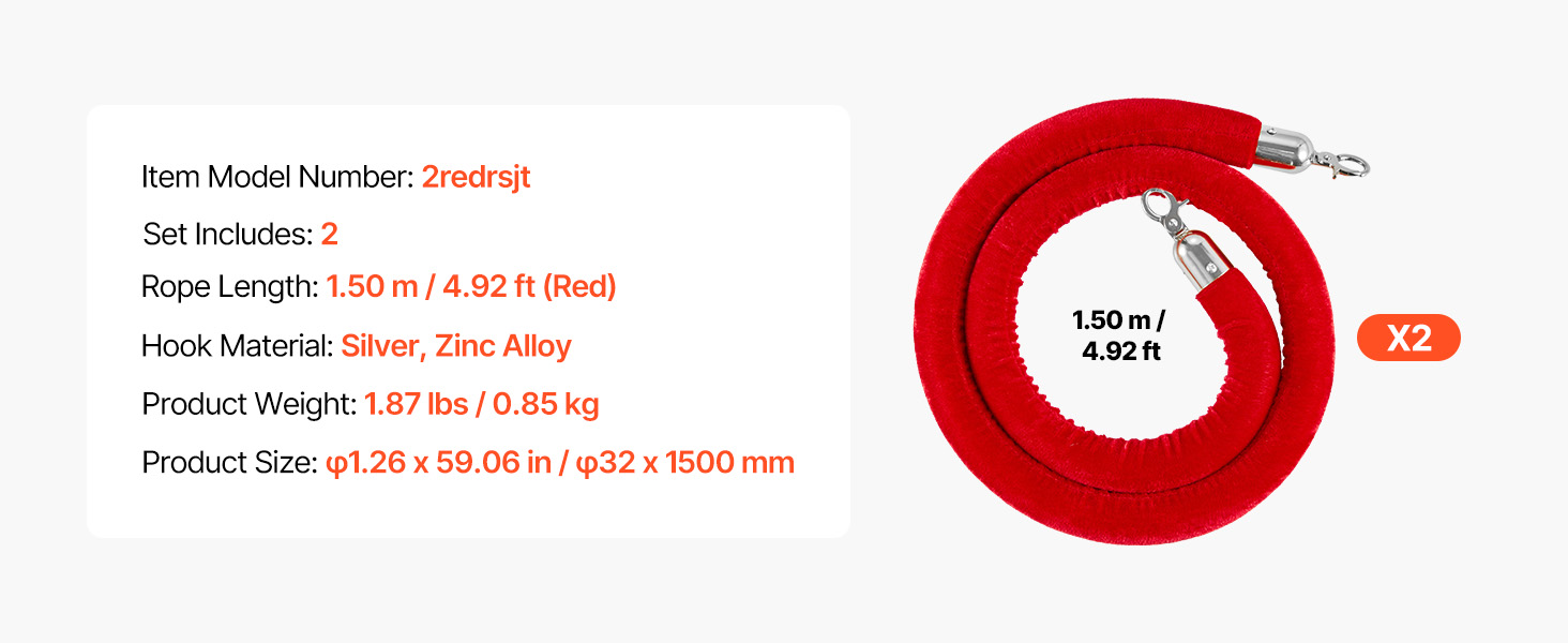 Háčiky zamatových lanových zábran sú navrhnuté pre rýchle pripnutie a hodia sa na väčšinu štandardných stĺpikov – sú ideálne ako náhradné alebo predlžovacie laná.