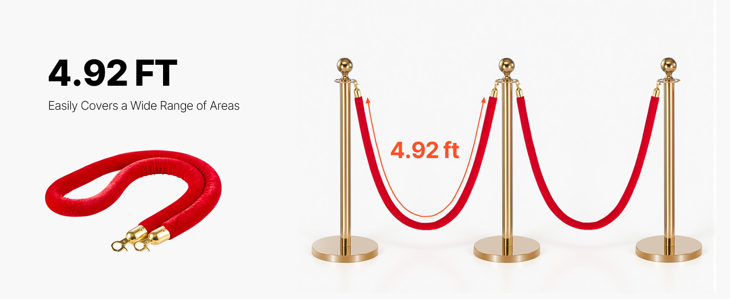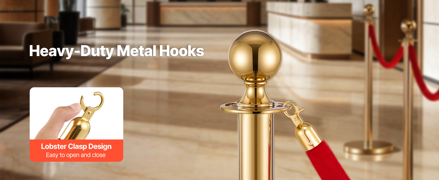 Háčiky zamatových lanových bariér sú navrhnuté pre rýchle pripnutie a hodia sa na väčšinu štandardných stĺpikov – sú ideálne ako náhradné alebo predlžovacie laná.