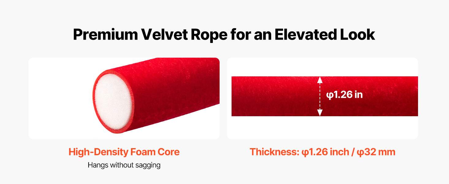 Hustá pena vo vnútri odoláva stlačeniu a pomáha zamatovému lanovému zábradliu udržať hladký, plný oblúk bez prehýbania.