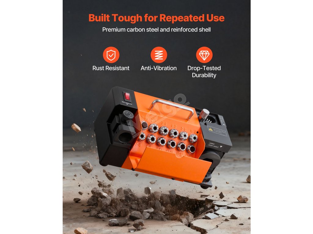 Profesionálna brúska na vrtáky VEVOR 3-15 mm kombinuje presné ostrenie, flexibilné nastavenie uhla, odolný brúsny kotúč CBN a vysokootáčkový motor s rýchlosťou 4600 ot/min. Rýchlo obnovuje ostrosť vrtákov, vďaka čomu je vŕtanie plynulejšie, rýchlejšie a efektívnejšie.