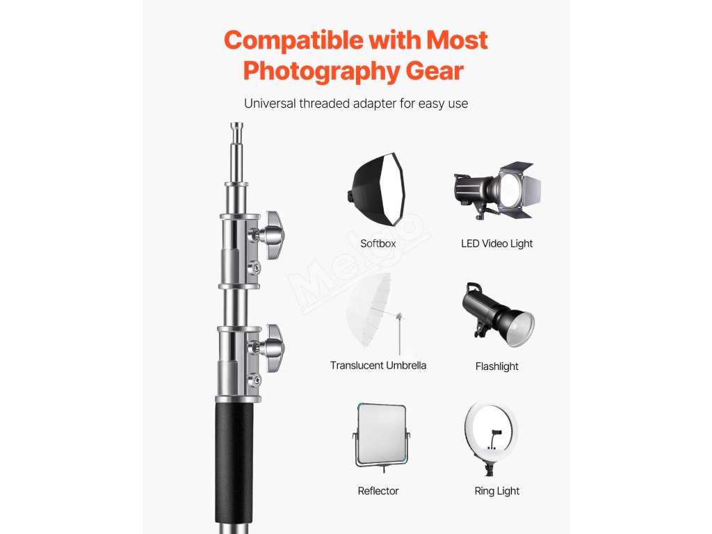 Tento odolný svetelný stojan je ideálny na širokú škálu nastavení vrátane portrétnej fotografie, zátiší, živého vysielania a filmovej produkcie. Spĺňa rozmanité potreby fotografov a kameramanov a ponúka spoľahlivú podporu pri rôznych tvorivých projektoch.