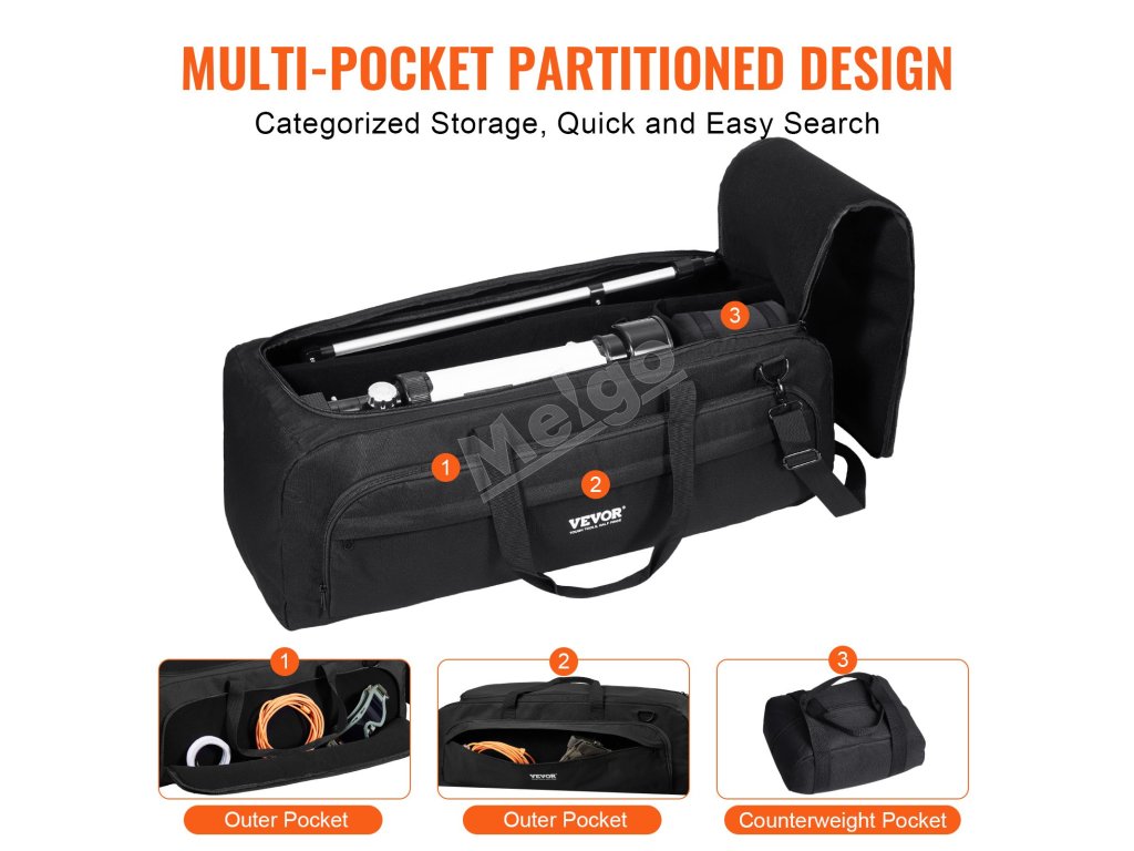 Naše puzdro na teleskop je vybavené tkaninou 900D Oxford a PU povrchovou úpravou, s perleťovou bavlnenou podšívkou a zamatom pre úplnú ochranu. 0.odnímateľné priehradky s hrúbkou 2"/5,5 mm zlepšujú úložný priestor. Obsahuje 2 vonkajšie vrecká, vrecko na protizávažie, 4 bezpečné popruhy a odnímateľný ramenný popruh, ideálne pre akékoľvek potreby.