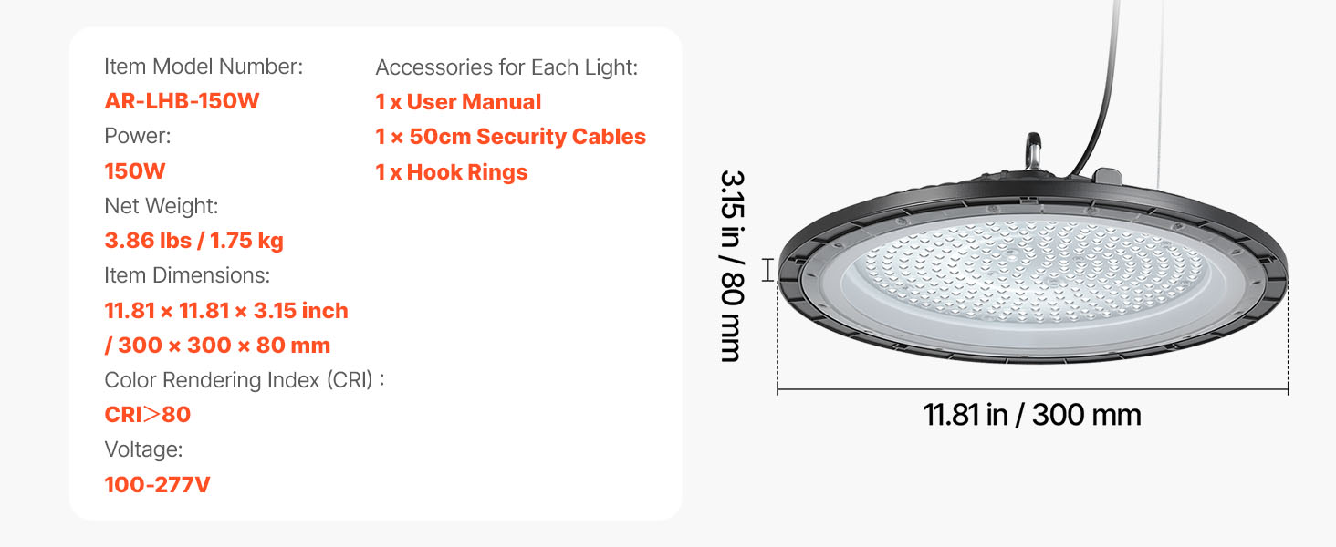 Tieto 150W svetlá s vysokým výkonom sú vybavené výkonnou LED diódou s 21 000 lúmenmi, ktorá poskytuje konzistentné osvetlenie vo veľkých priestoroch. Dobre sa hodia do skladov, dielní, telocviční alebo komerčných priestorov, kde podľa potreby redukujú tiene a zabezpečujú vysoký jas osvetlenia.