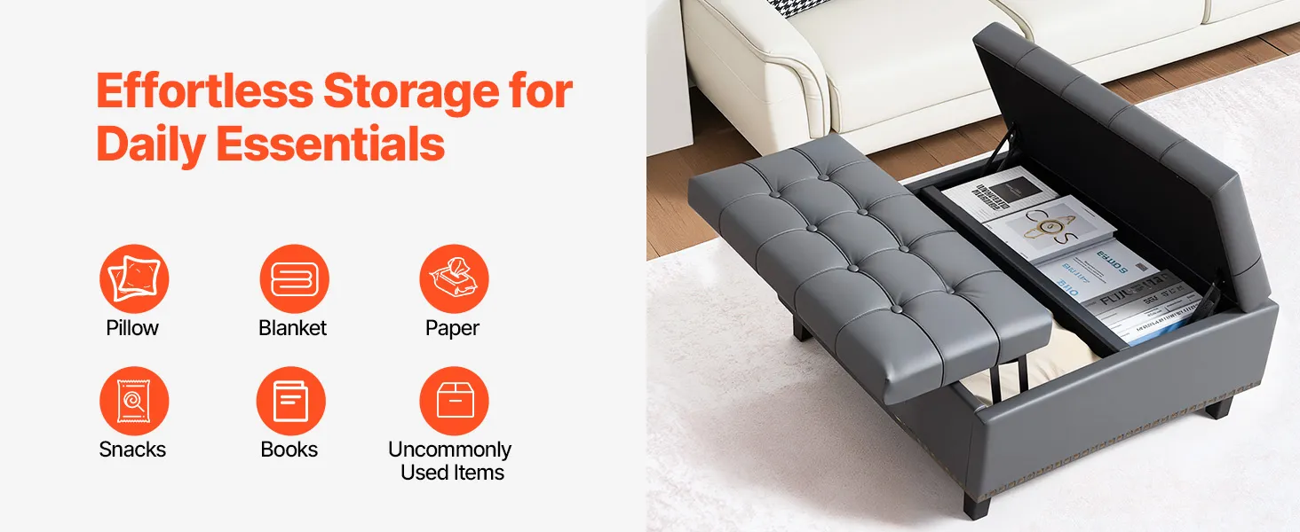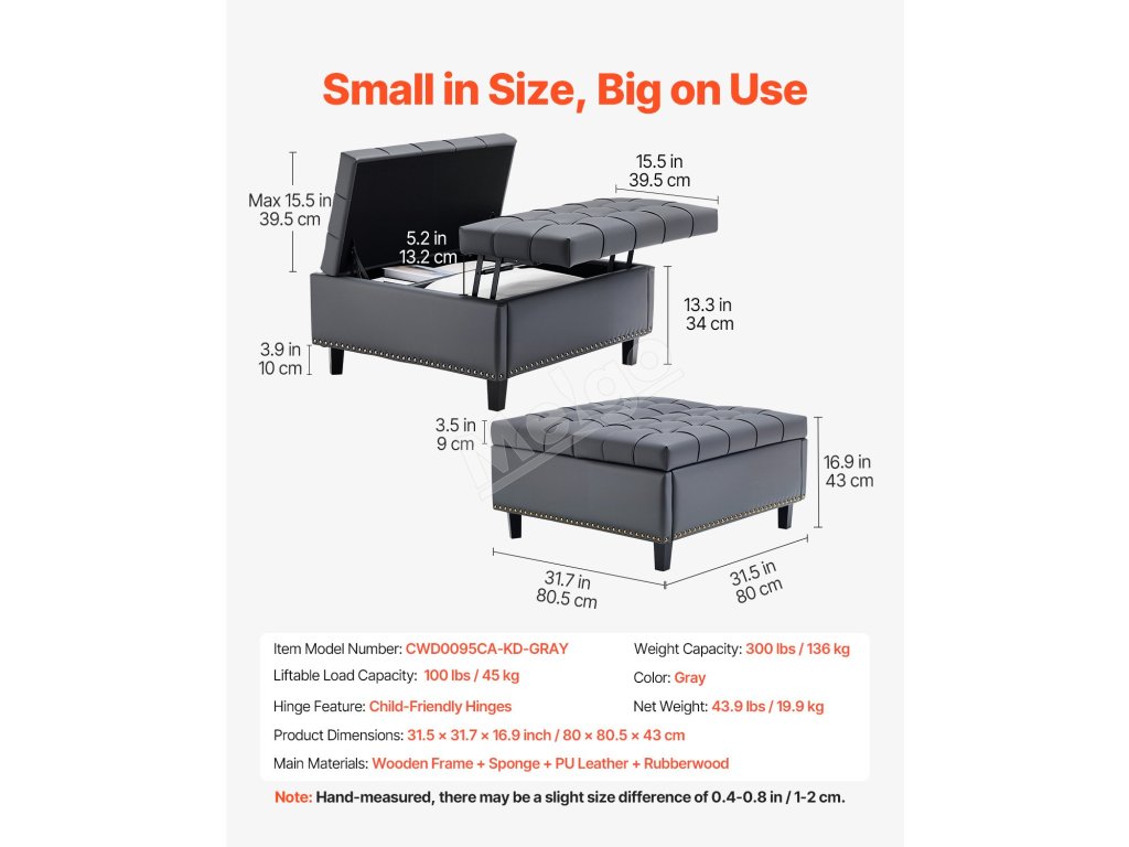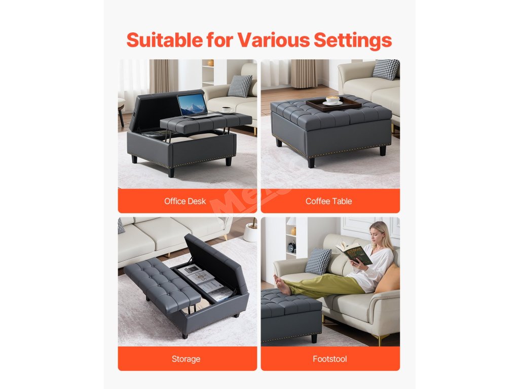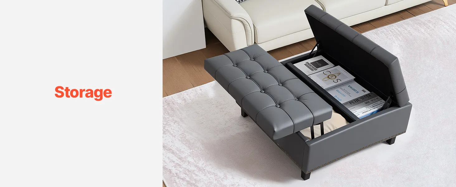 Tento univerzálny kožený otoman s úložným priestorom v sebe spája poriadok a eleganciu. Vďaka skrytému úložnému priestoru vo vnútri a pohodlnému čalúnenému sedadlu v hornej časti sa skvele hodí ako podnožka, úložná truhlica alebo štýlový akcent. Perfektne sa hodí do malých priestorov a moderných domácností.