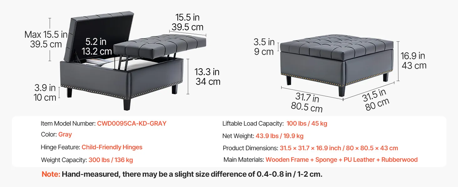 | Rozmery výrobku | 31.5 x 31,7 x 16,9 palca/80 x 80,5 x 43 cm |