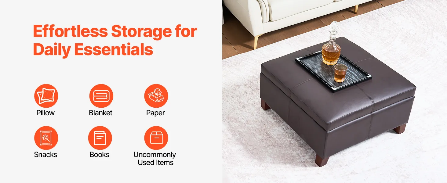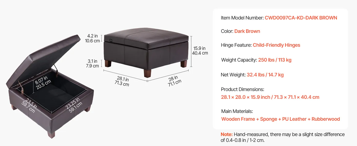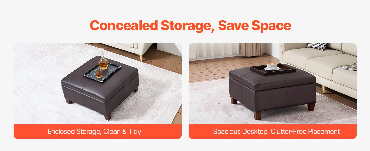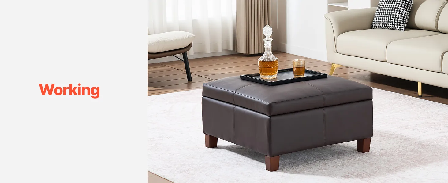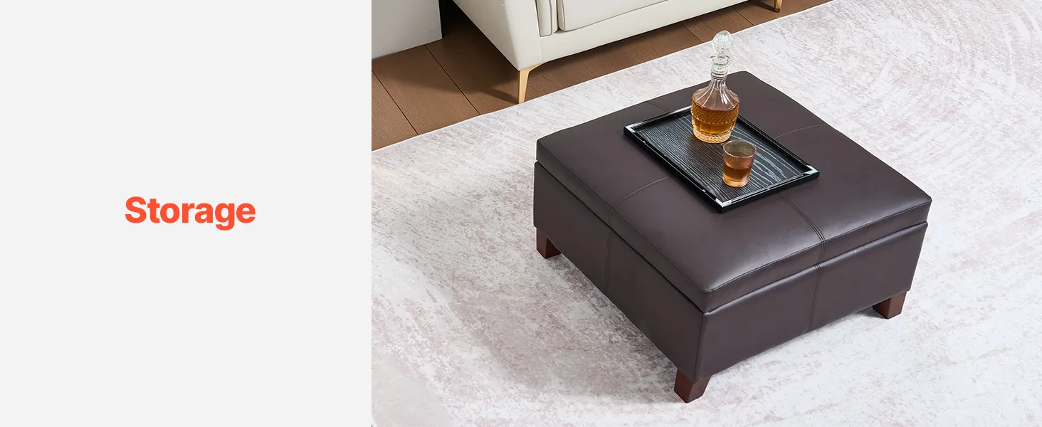 Tento univerzálny kožený otoman s úložným priestorom v sebe spája poriadok a eleganciu. Vďaka skrytému úložnému priestoru vo vnútri a pohodlnému čalúnenému sedadlu v hornej časti sa skvele hodí ako podnožka, úložná truhlica alebo štýlový akcent. Perfektne sa hodí do malých priestorov a moderných domácností.