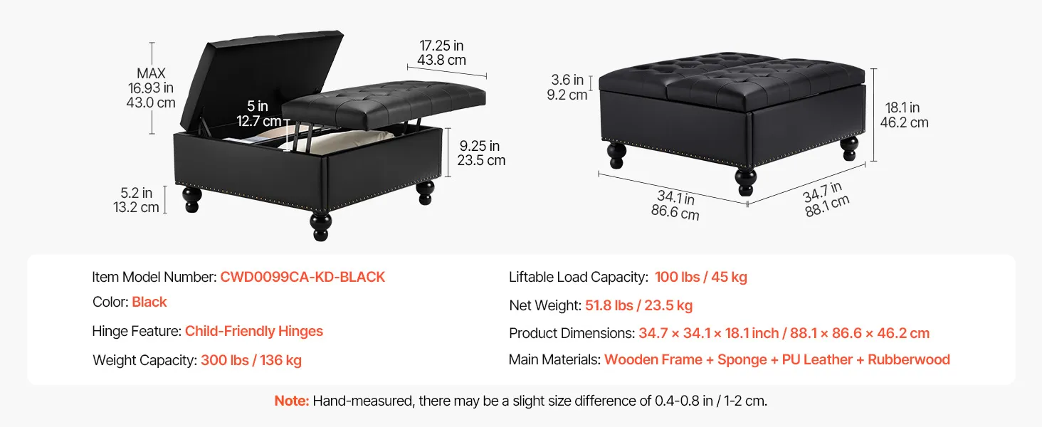 | Rozmery výrobku | 34.7 x 34,1 x 18,1 palca/88,1 x 86,6 x 46,2 cm |