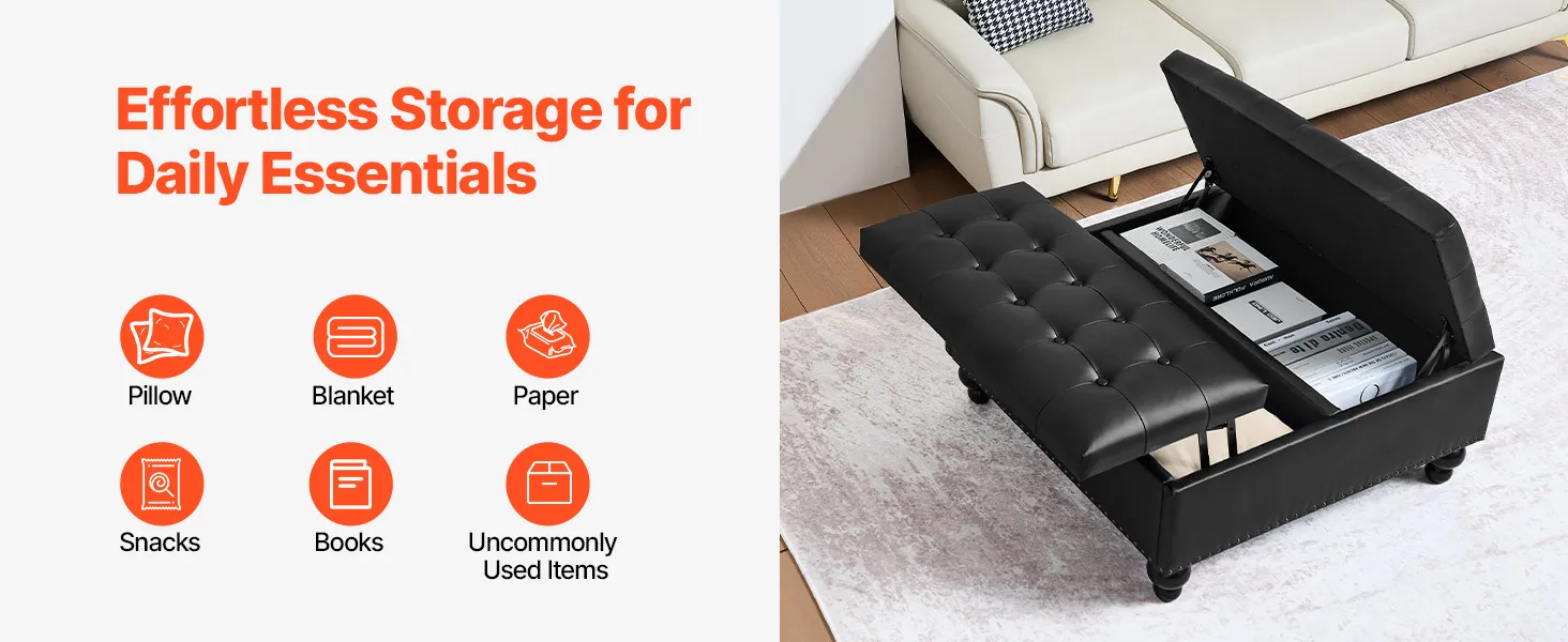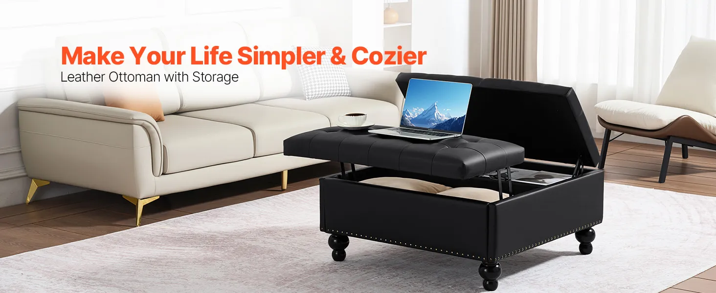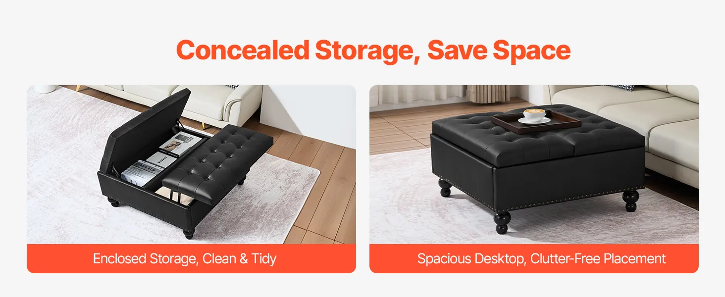 Tento univerzálny kožený otoman s úložným priestorom v sebe spája poriadok a eleganciu. Vďaka skrytému úložnému priestoru vo vnútri a pohodlnému čalúnenému sedadlu v hornej časti sa skvele hodí ako podnožka, úložná truhlica alebo štýlový akcent. Perfektne sa hodí do malých priestorov a moderných domácností.