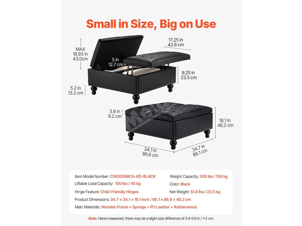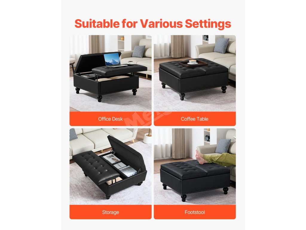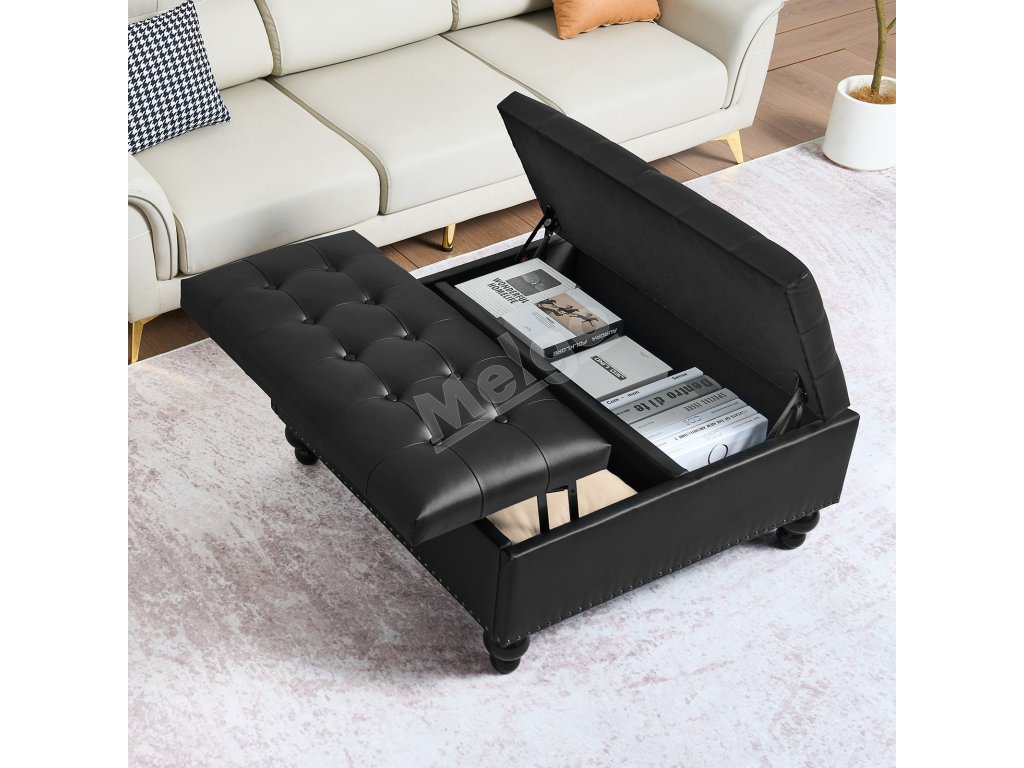 Tento univerzálny kožený otoman s úložným priestorom v sebe spája poriadok a eleganciu. Vďaka skrytému úložnému priestoru vo vnútri a pohodlnému čalúnenému sedadlu v hornej časti sa skvele hodí ako podnožka, úložná truhlica alebo štýlový akcent. Perfektne sa hodí do malých priestorov a moderných domácností.