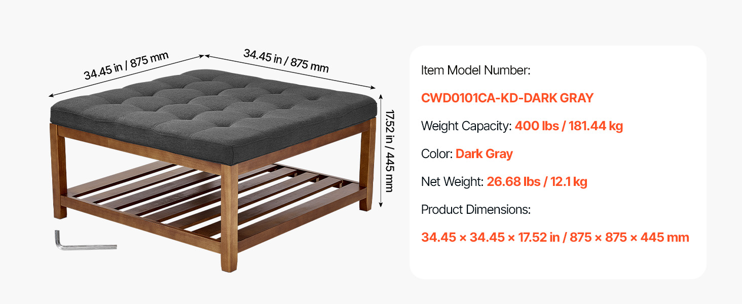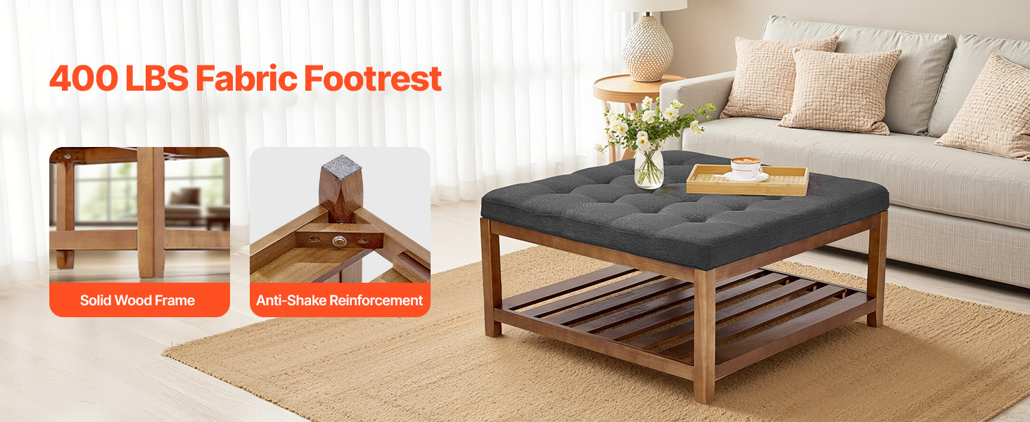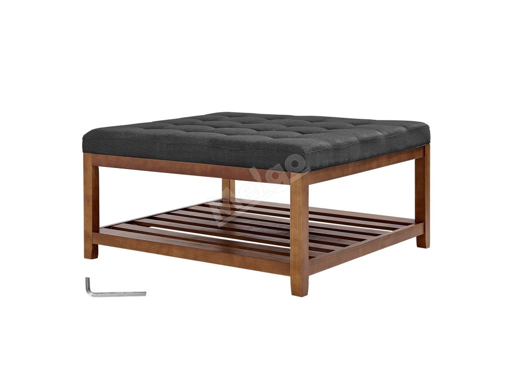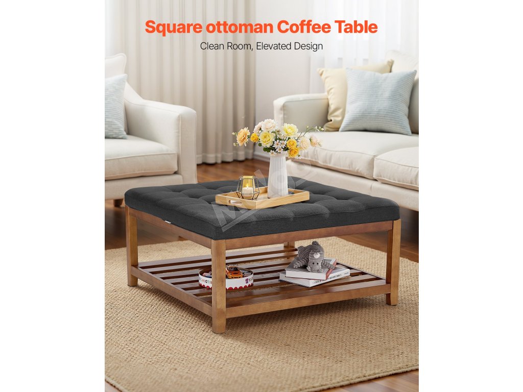 Štvorcový tuftovaný taburet s policou 34.5 inch, 400 lbs, tmavosivý
