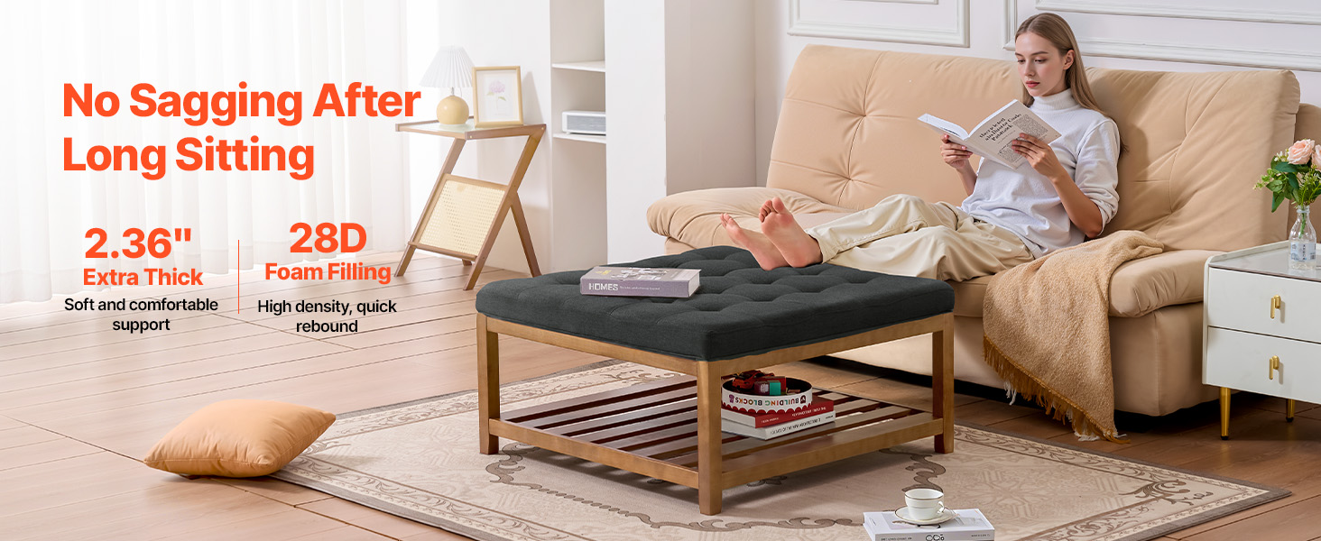 Náš štvorcový konferenčný stolík otoman je vybavený hrubou 28D vysokoelastickou penou, ktorá sa časom nesrovná a poskytuje rýchle odrazenie a trvalú mäkkú oporu. Zachováva si pohodlie a tvar aj pri dlhodobom používaní.