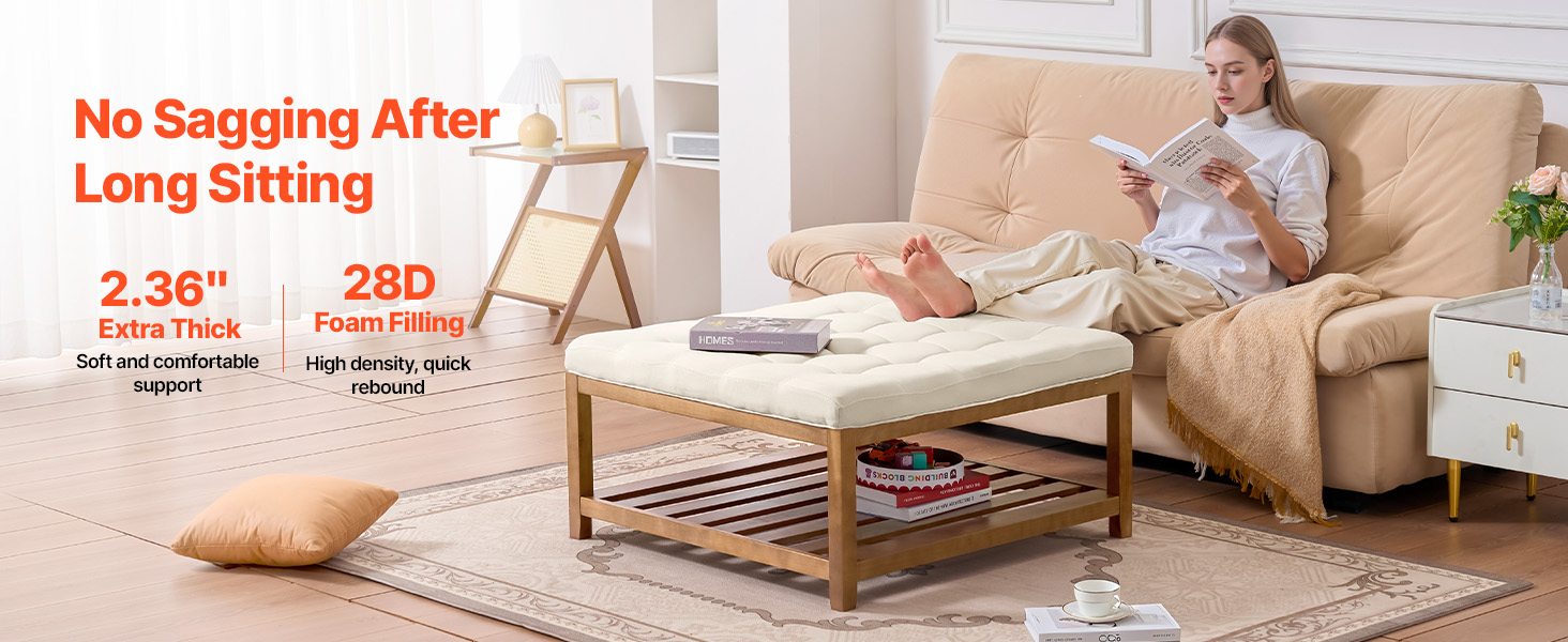 Náš štvorcový konferenčný stolík otoman je vybavený hrubou 28D vysokoelastickou penou, ktorá sa časom nesrovná a poskytuje rýchle odrazenie a trvalú mäkkú oporu. Zachováva si pohodlie a tvar aj pri dlhodobom používaní.