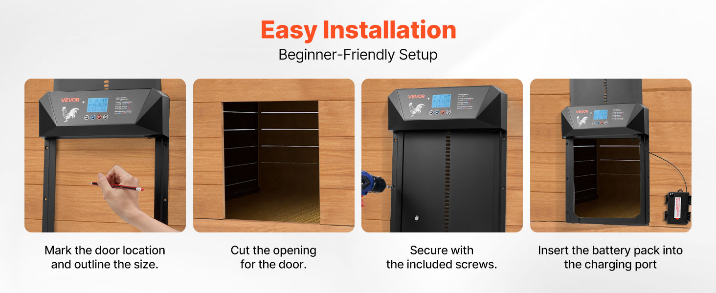 Inštalácia v iba štyroch krokoch bez špeciálneho náradia alebo zručností. Spustite prevádzku dvierok kurína za niekoľko minút.