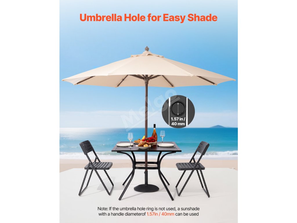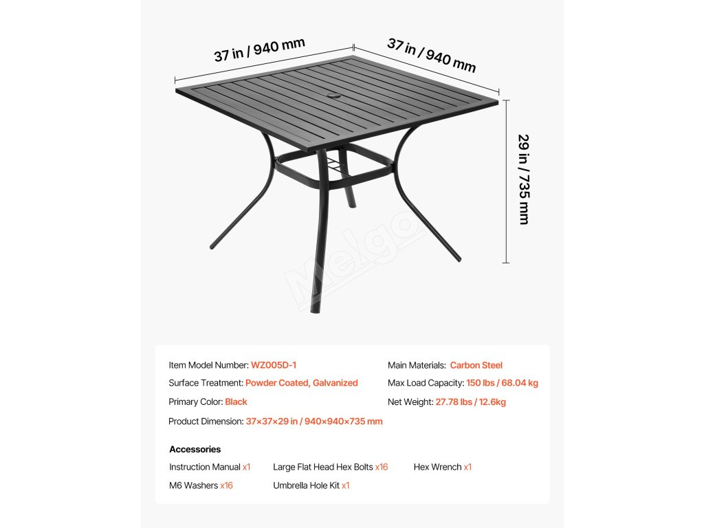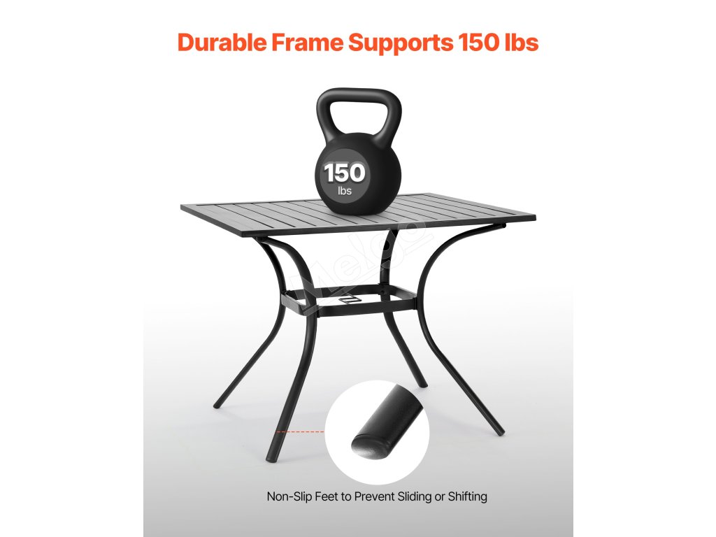 Tento kovový vonkajší jedálenský stôl má nosnosť 150 libier / 68 kg a poskytuje stabilnú oporu, ktorá je odolná proti prevráteniu a deformácii.