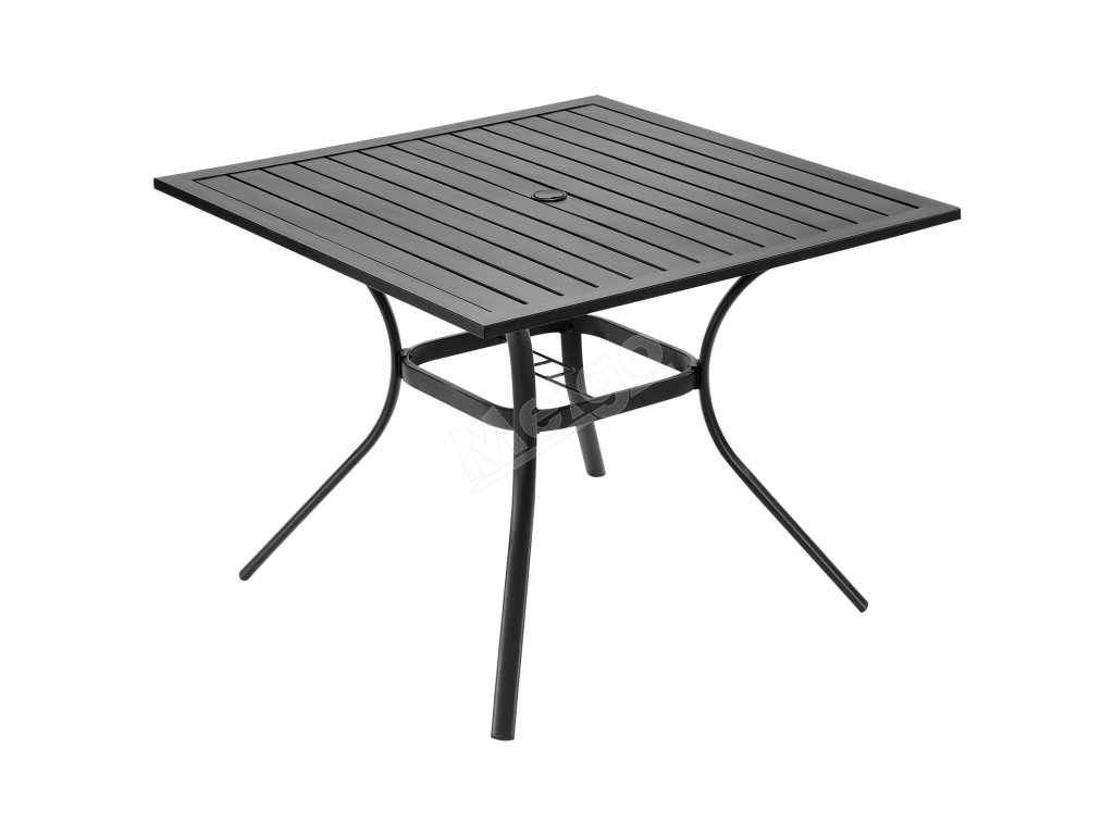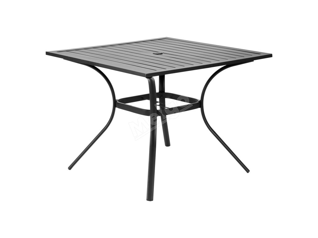 Záhradný jedálenský stôl 94×94 cm oceľový lamelový s otvorom 38 mm