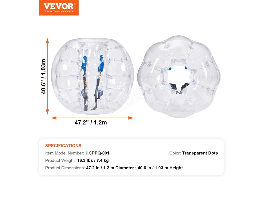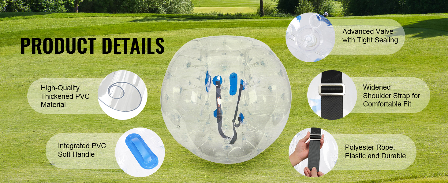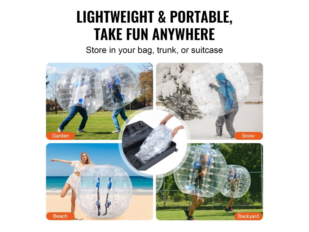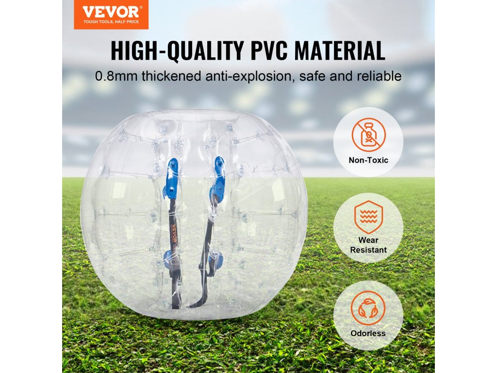 Rozpútajte dokonalú zábavu s nafukovacími loptami VEVOR. Naše nárazníkové lopty s vonkajším priemerom 4FT, vyrobené z 0,8 mm hrubého PVC odolného proti výbuchu, sú navrhnuté pre maximálnu odolnosť a bezpečnosť. Pripravte sa na nárazové vzrušenie a vytvárajte nezabudnuteľné momenty s bublinkovými futbalovými loptami VEVOR!