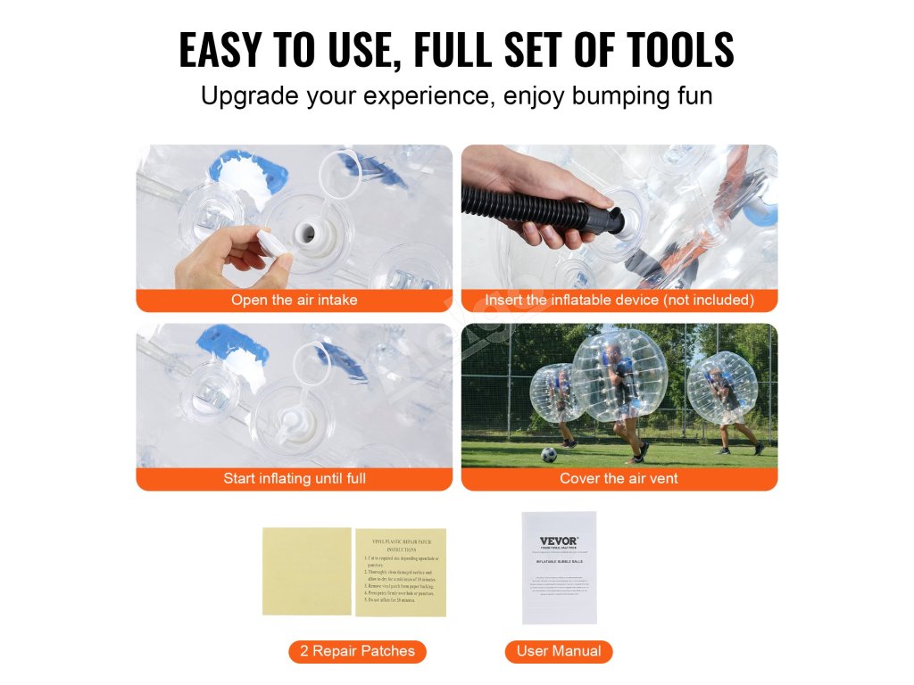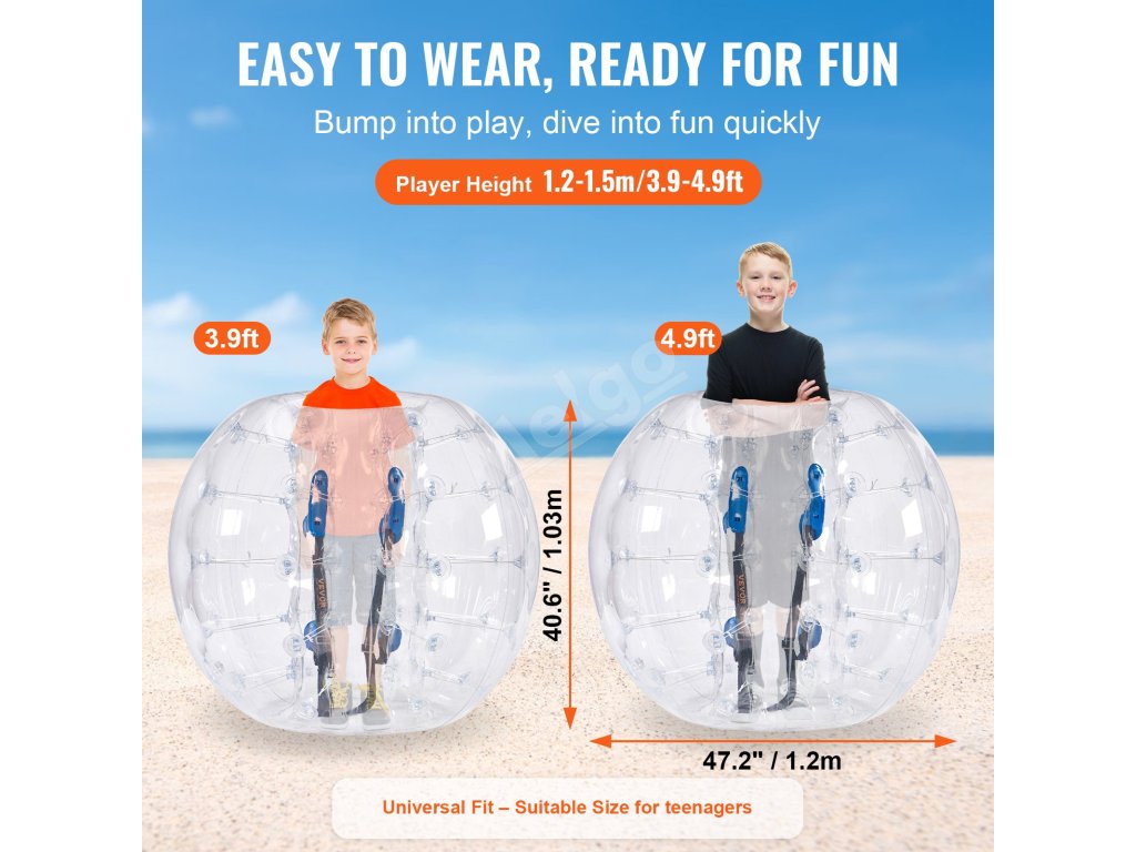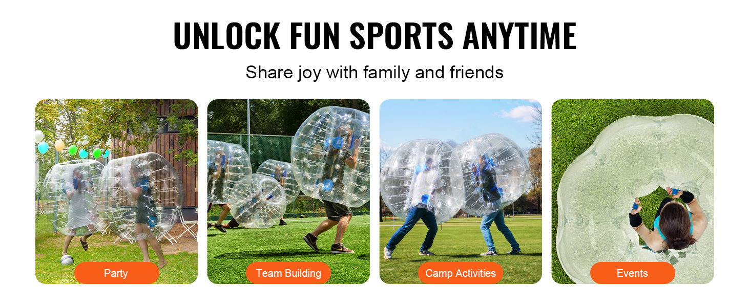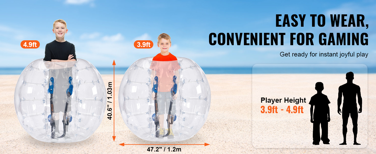 Rozpútajte dokonalú zábavu s nafukovacími loptami VEVOR. Naše nárazníkové lopty s vonkajším priemerom 4FT, vyrobené z 0,8 mm hrubého PVC odolného proti výbuchu, sú navrhnuté pre maximálnu odolnosť a bezpečnosť. Pripravte sa na nárazové vzrušenie a vytvárajte nezabudnuteľné momenty s bublinkovými futbalovými loptami VEVOR!
