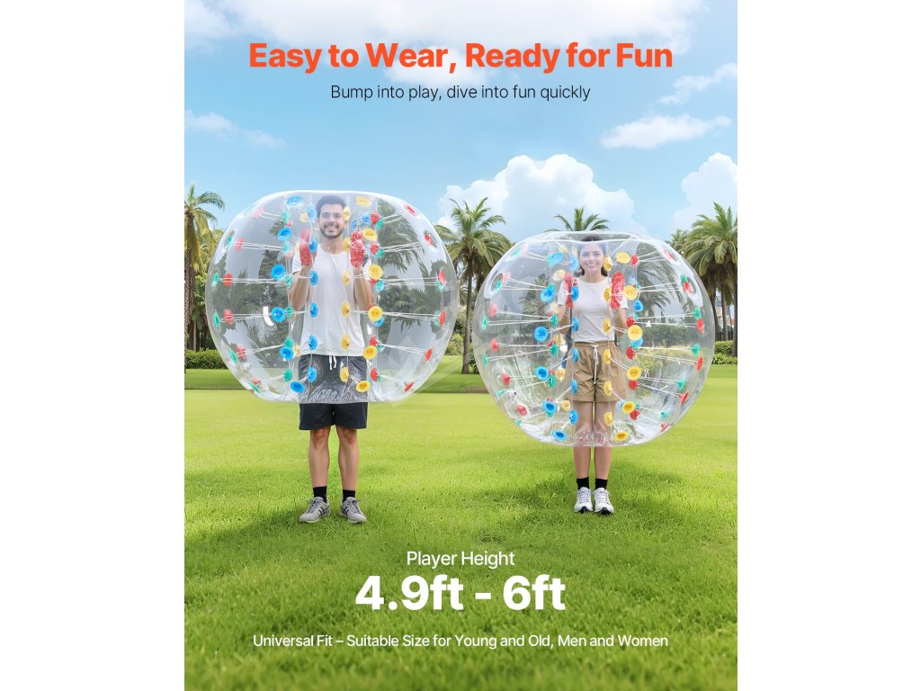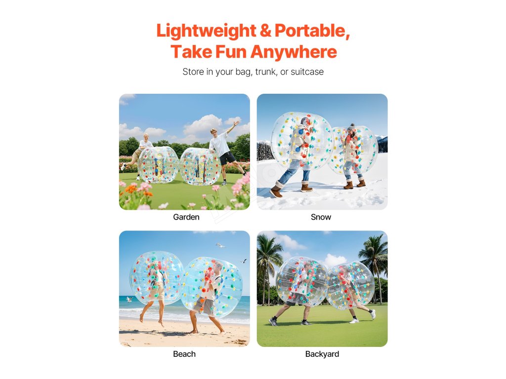 Naše telesné sumo zorbové lopty sú ideálne na zábavu pre jednotlivca alebo viacerých hráčov, vďaka čomu si môžete užívať slobodu pri skákaní, hádzaní, kotúľaní a narážaní. Zabavte sa s rodinou a priateľmi a zároveň si užívajte radosť z fyzickej aktivity.