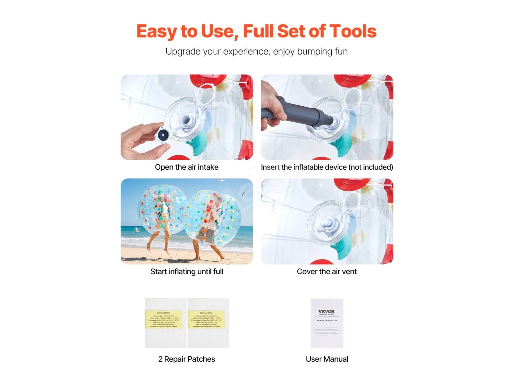 Kompletné vybavenie so všetkými potrebnými nástrojmi, nafúknutie je jednoduché. Stačí postupovať podľa pokynov a v okamihu budete pripravení na hru s hrkálkami.